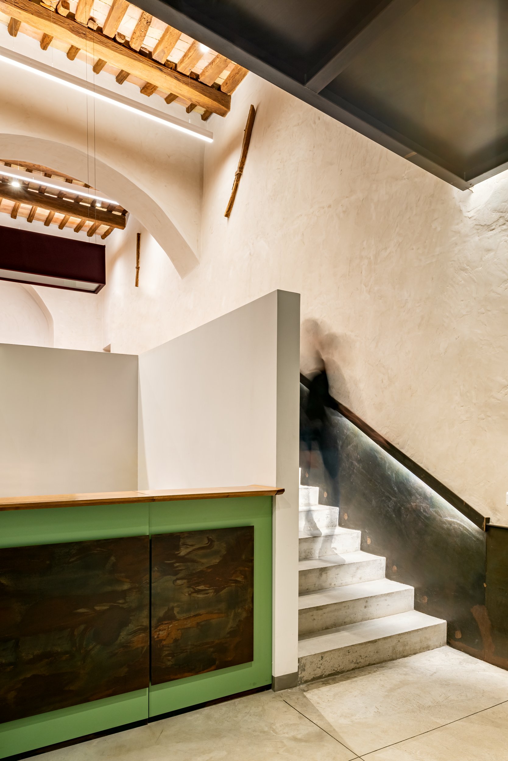 The new headquarters of the Brunello di Montalcino Consortium is located within the main pedestrian route between the public spaces of the cloisters and the courtyard, which will cross the entire Complex of Saint Augustine. The project involves removing all cement elements that were added in the past after carefully analysing the samples taken from the internal walls, and creating supporting structural elements made of steel to lighten the weight of the entire structure and make it stronger.
