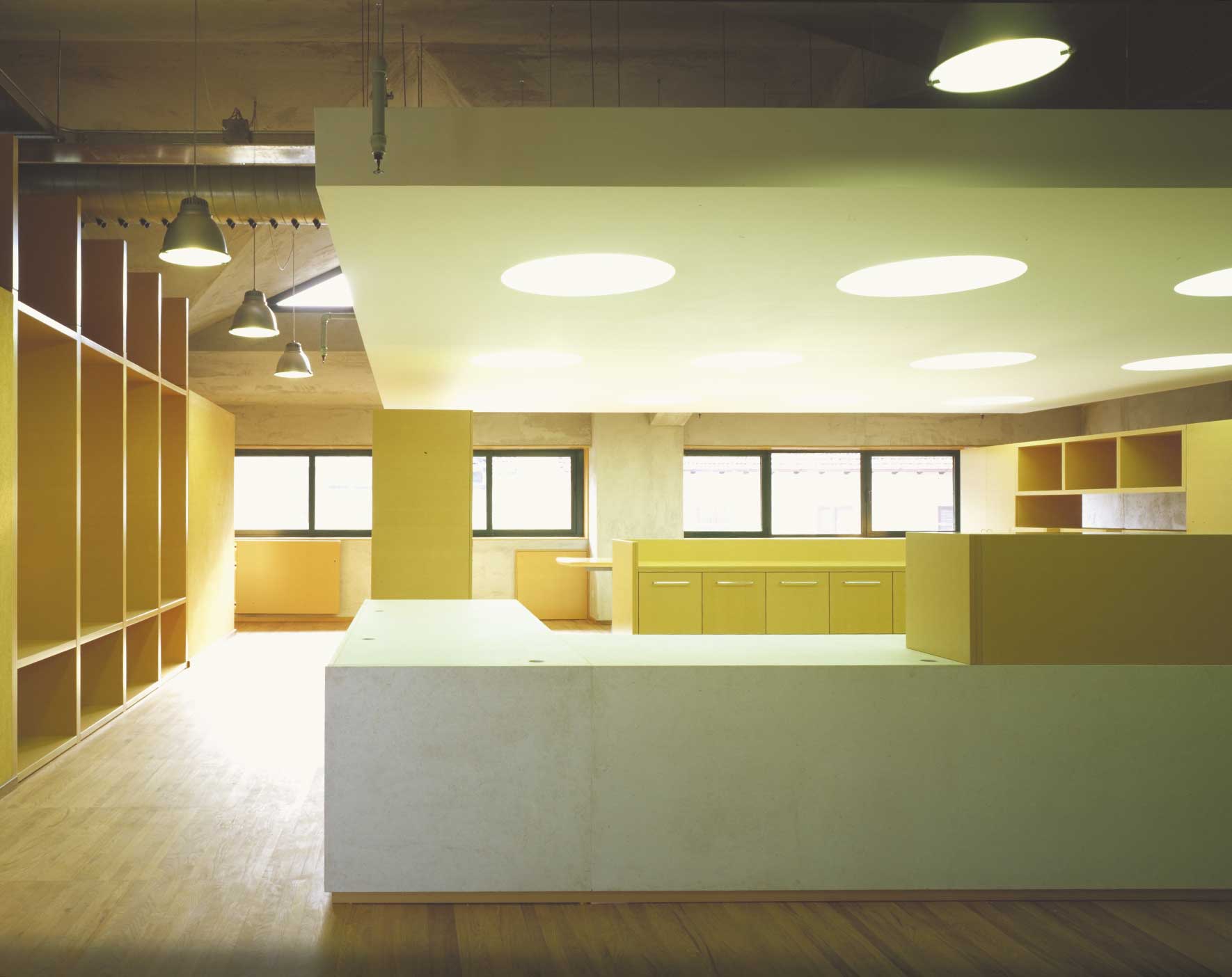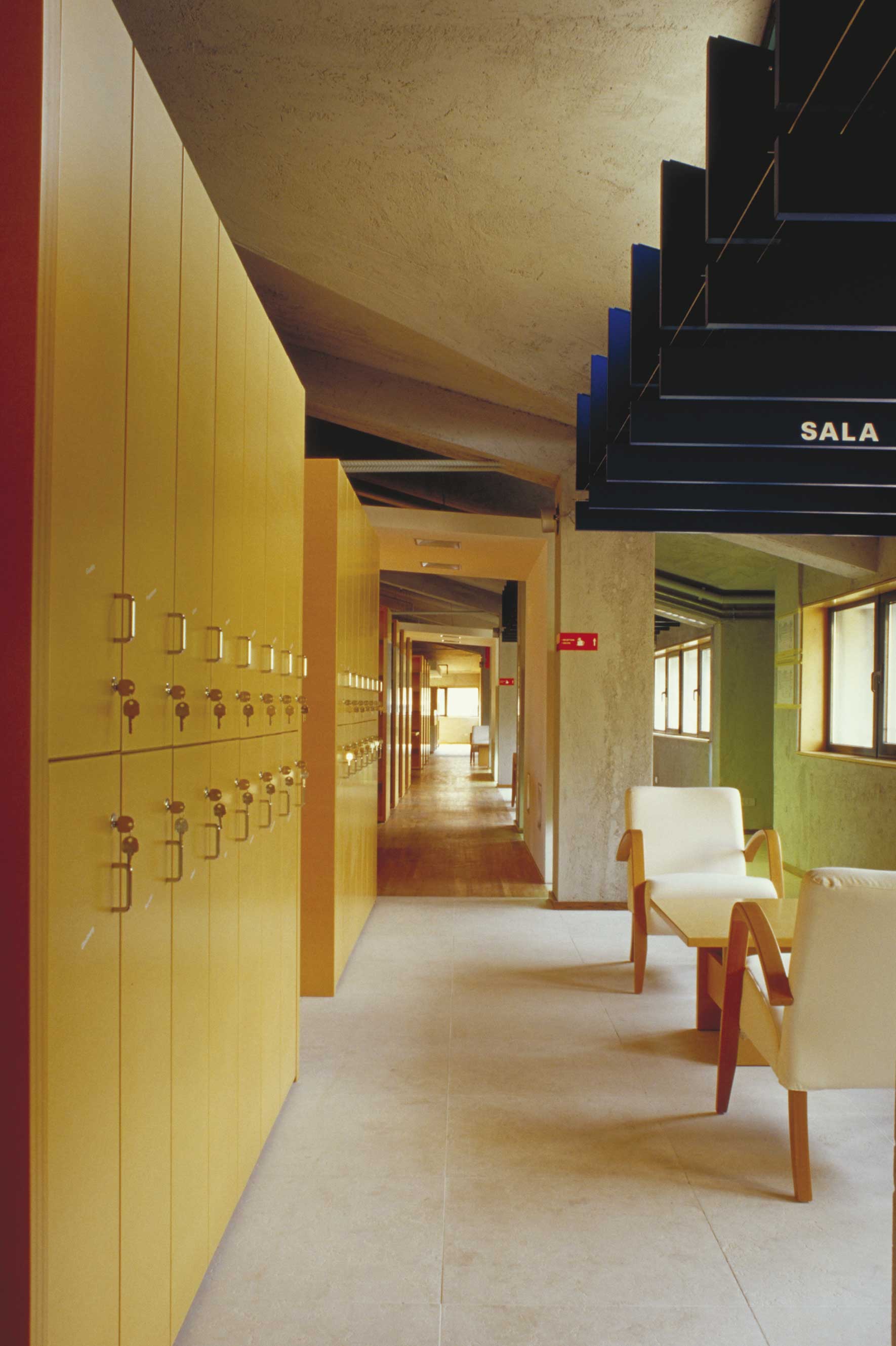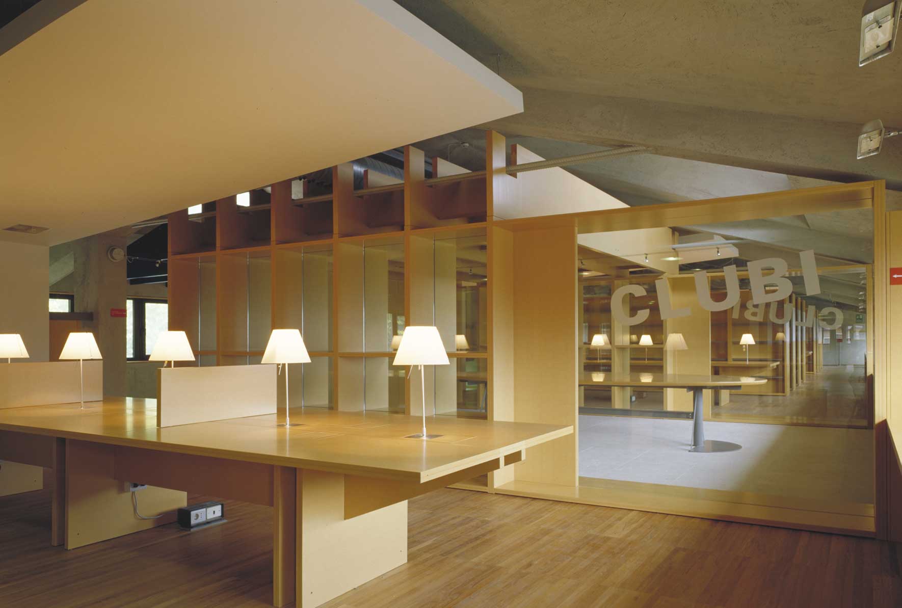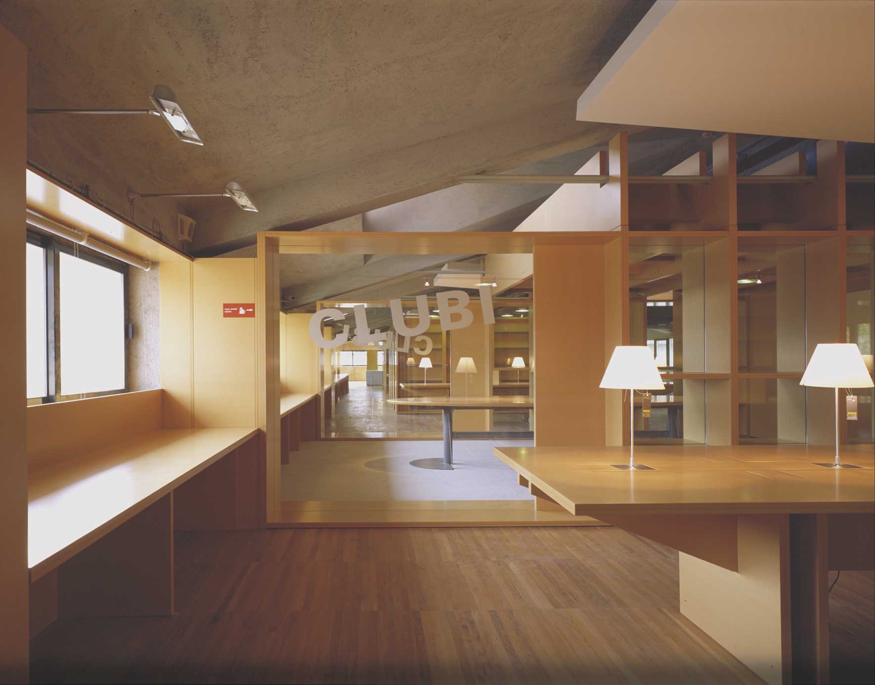The project for the CLUBI library, which is intended to be created within an existing building, provides for a large open space where people can read, find information, study and relax in different areas distributed along a continuous path, all shelves being within arm’s reach.