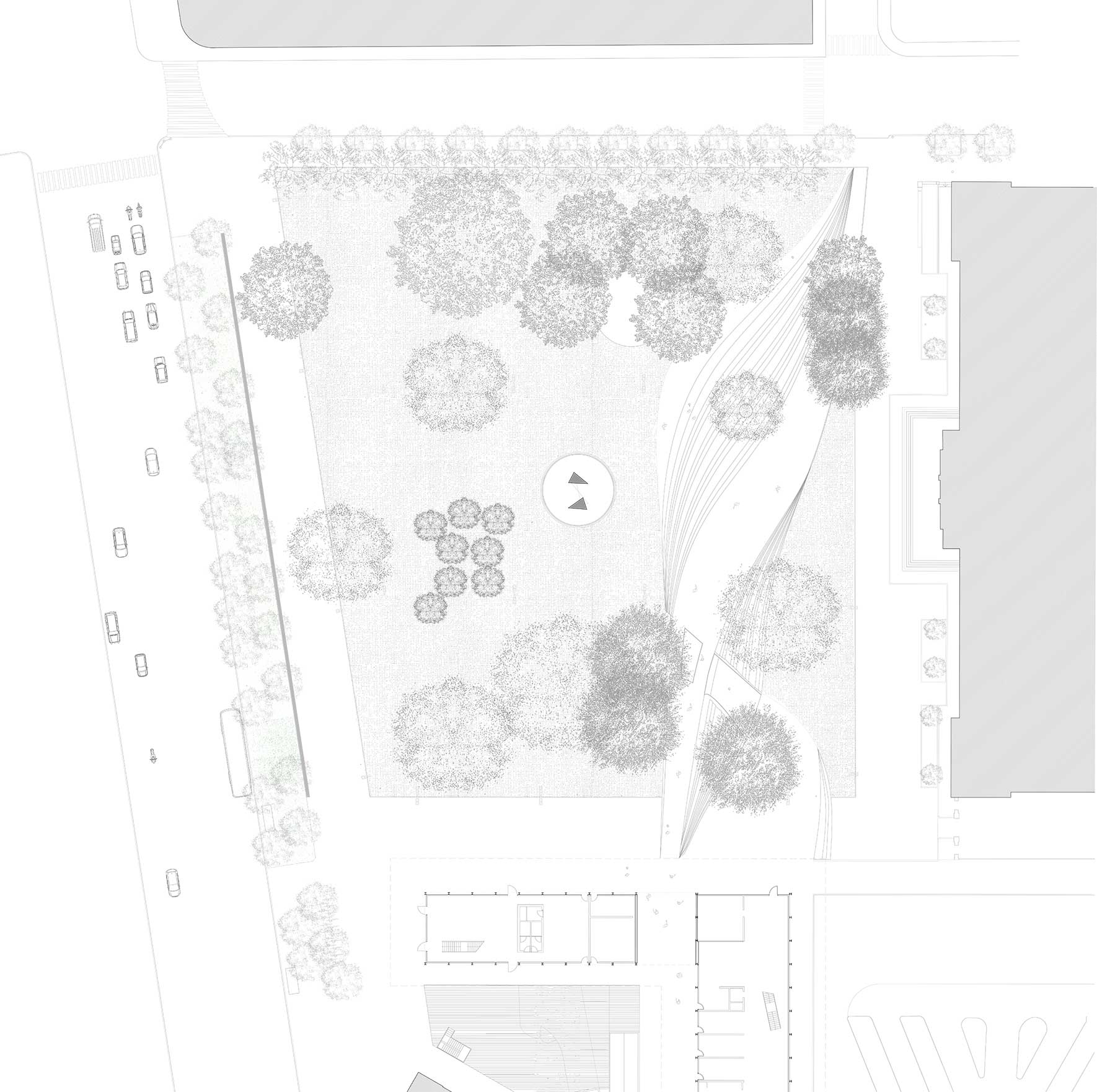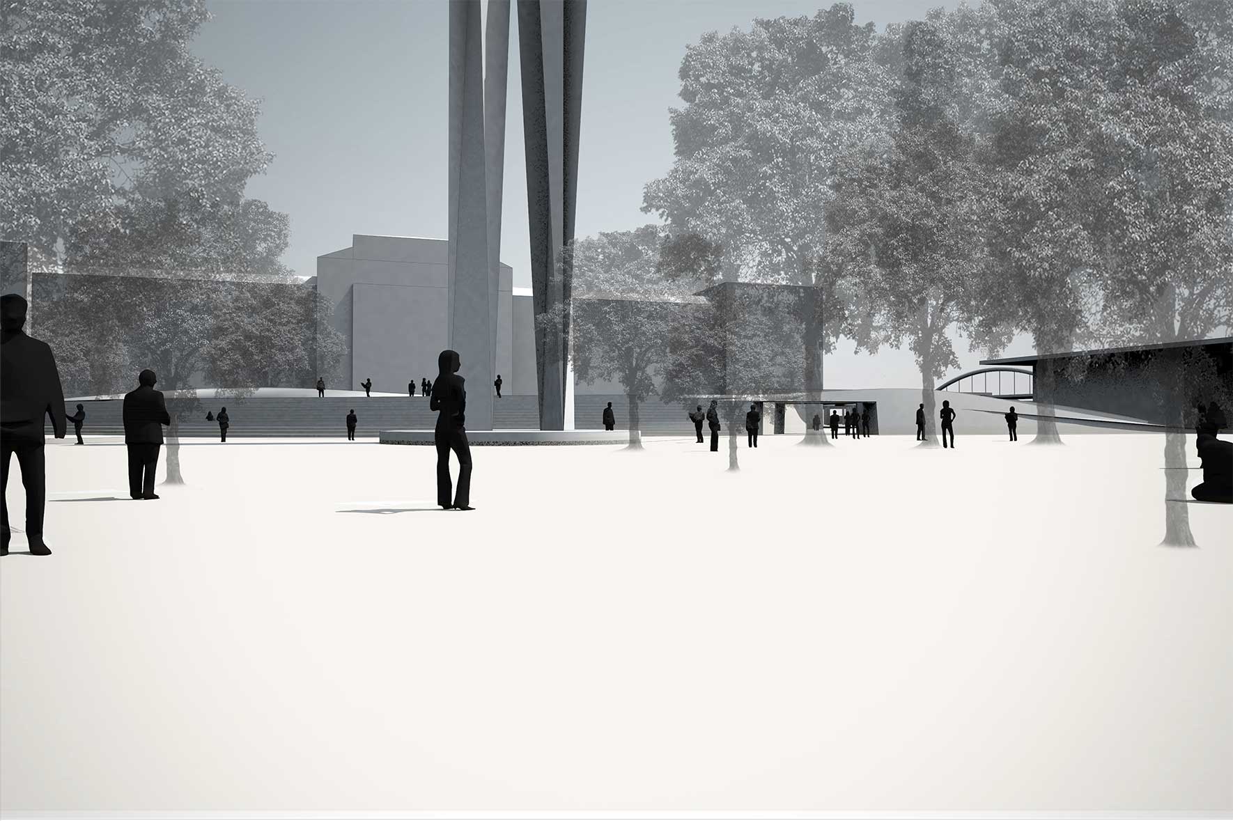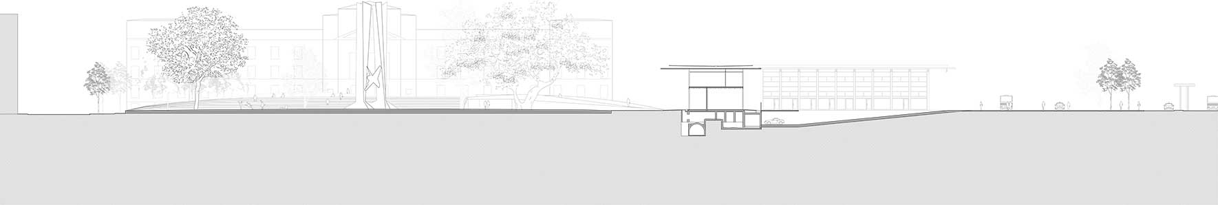 The goal of the architectural project, as it should be, will not be the construction of one or more building volumes, but rather the activation of a collective and shared process capable of filling this void. It is nature in all its forms that gives us energy and emotion, but we must understand that nature in the city is different from that in the countryside. Only the old trees of Piazzale degli Alpini should be preserved, as they awaken the primal feelings that make us feel alive, but they must be freed from their prison and solitude.