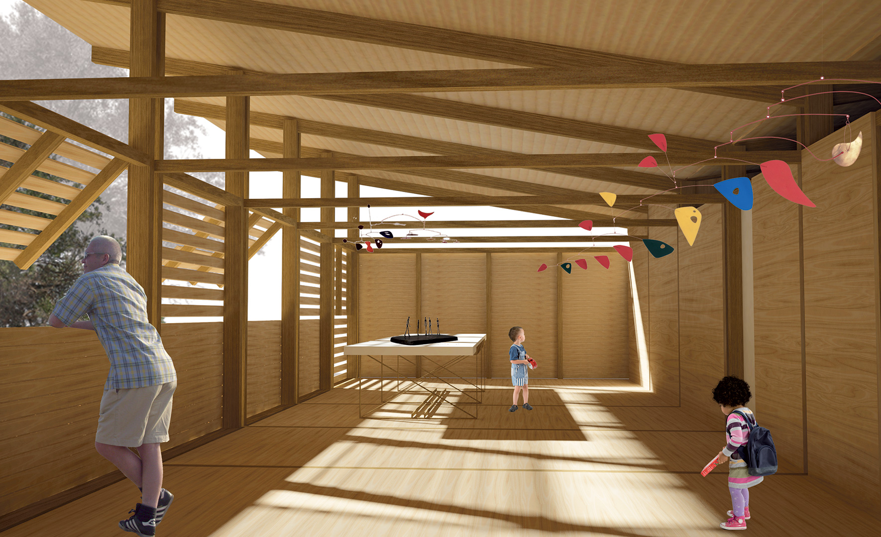 From a functional and morphological point of view, the project is made up of 5 different areas, which together form a single harmonious system like rooms in a single house: a multi-purpose room with an open-air art gallery, windbreak walls made of hay bales, a bed & breakfast, an agora and an open-air art gallery.
