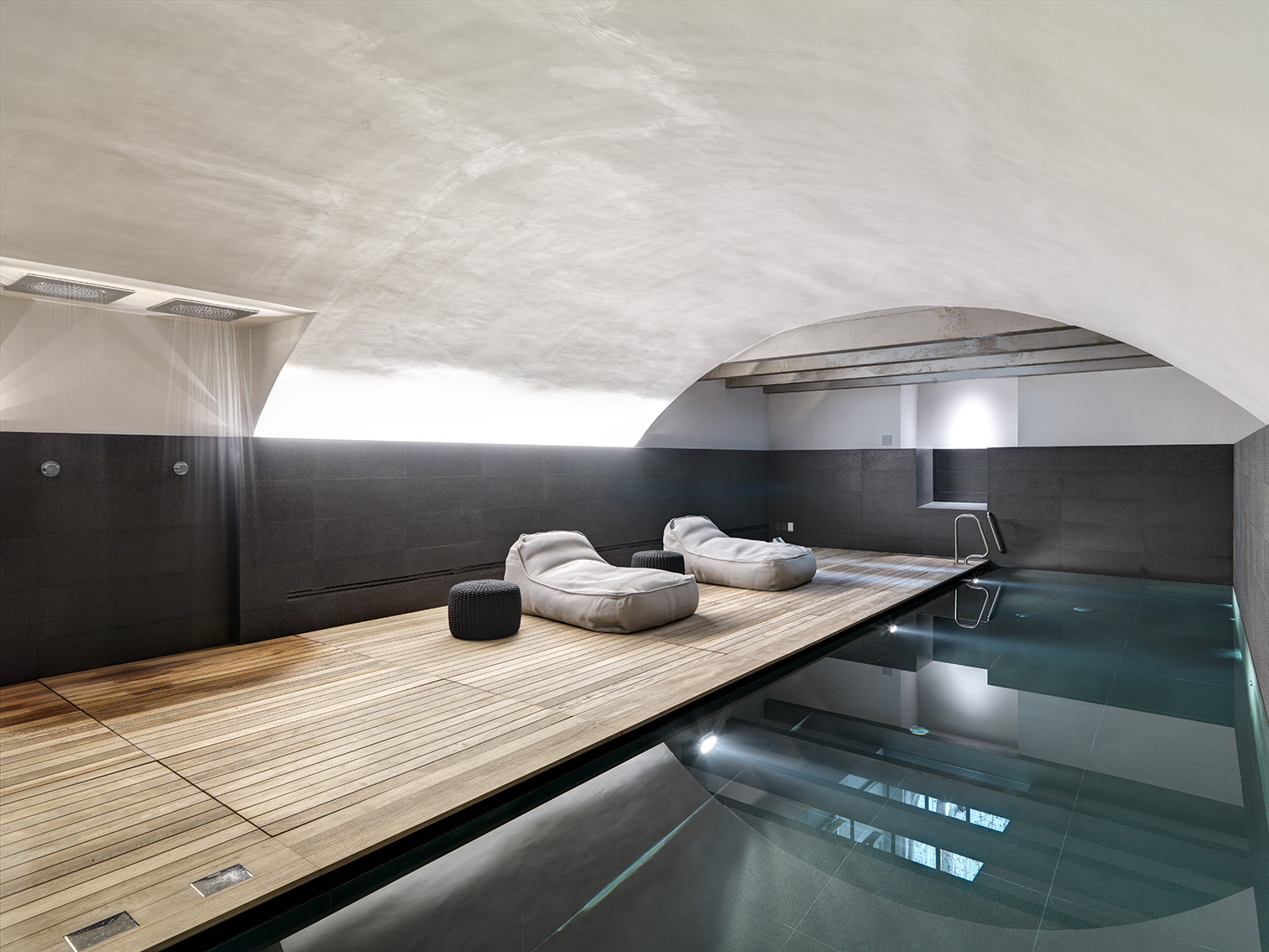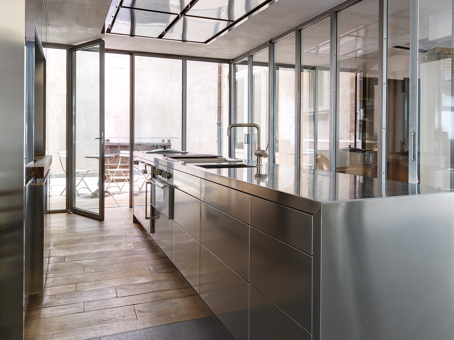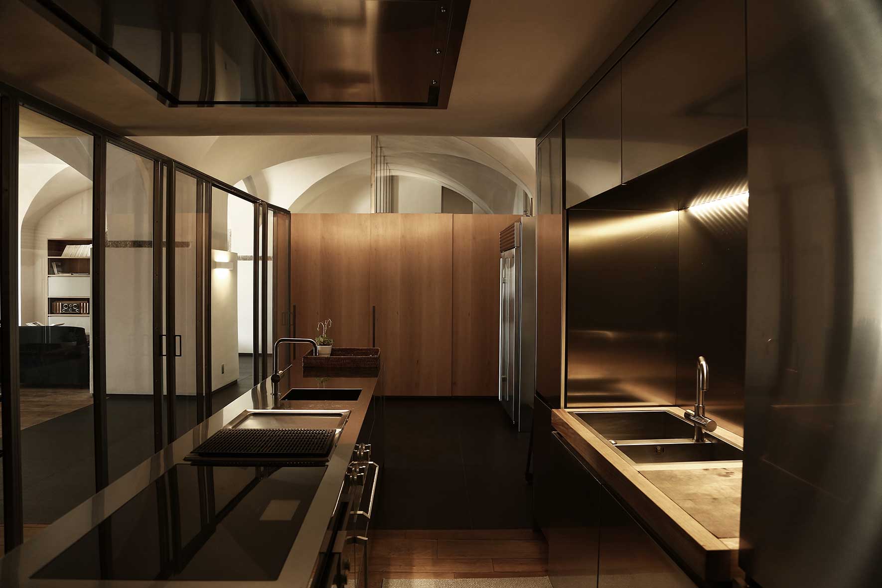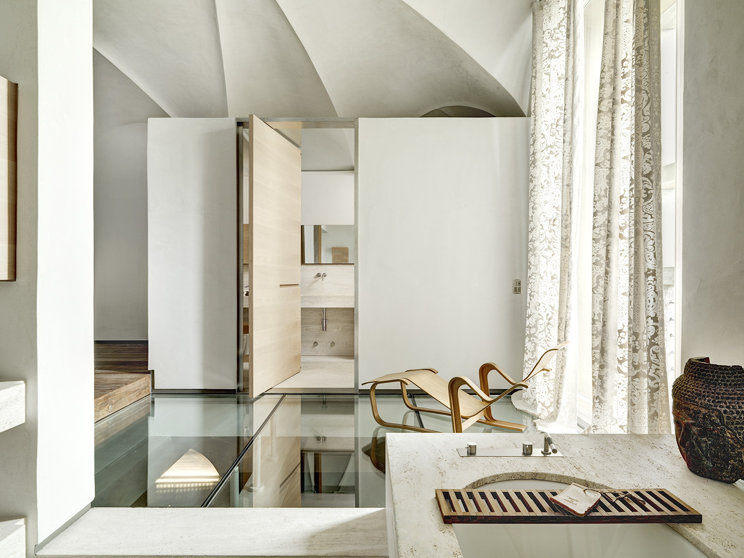 Minimal additions to an exclusive two-storey house in Upper Bergamo that dialogues with its challenging architectural history through transparencies, lightness and light, paradigms of boundless quality.