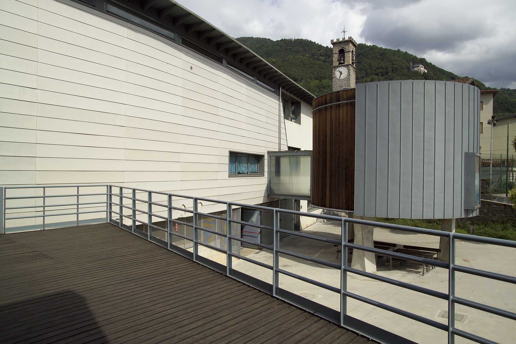 The real difficulty was to bring together under one roof the civic centre, the library, the multipurpose gymnasium, the bar with games and the pastoral centre of the parish. Two places in Colzate that have always contrasted with each other to attract young people. The architecture has created intriguing complementarity and unusual common access areas, thus succeeding where politics has always failed.