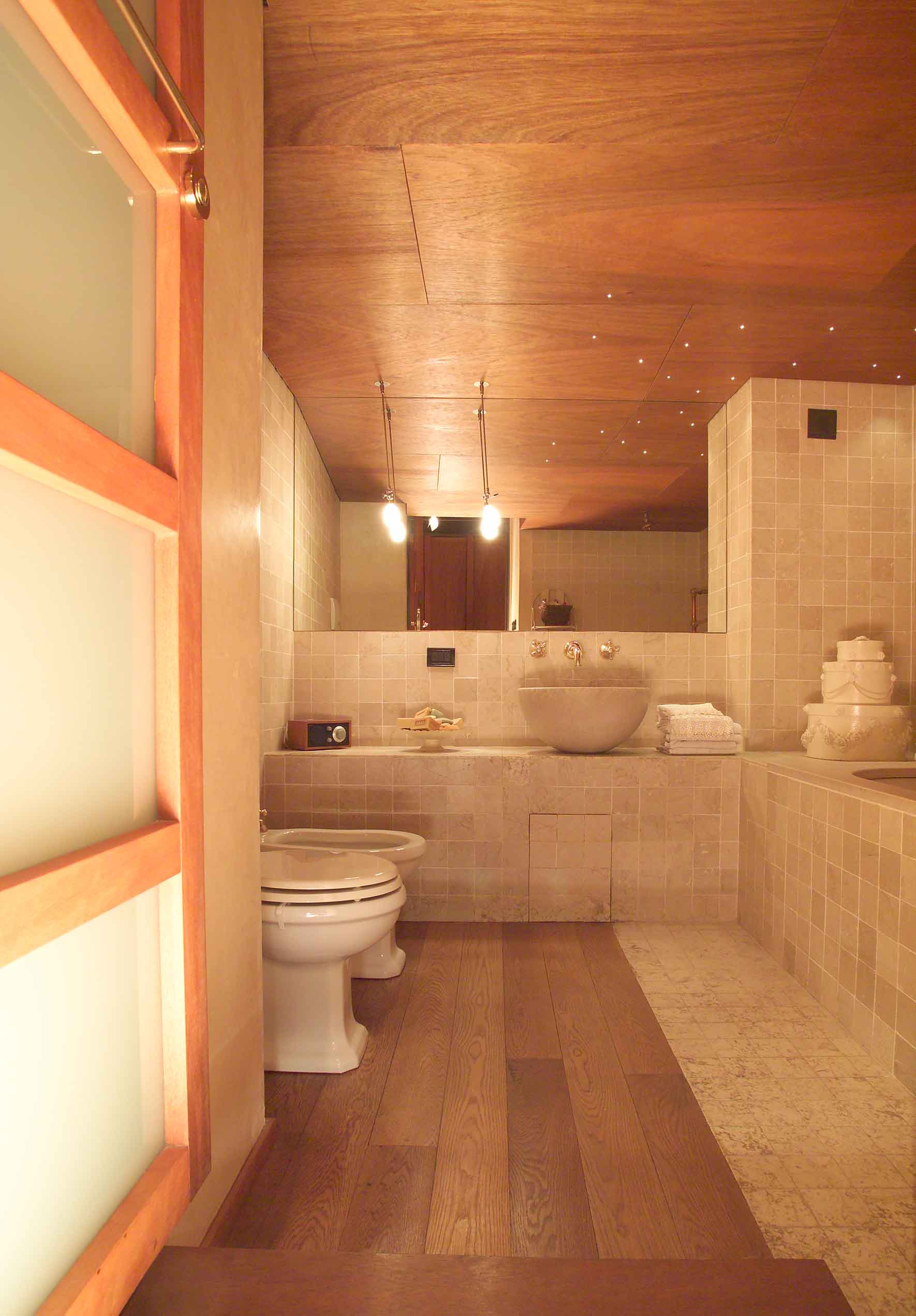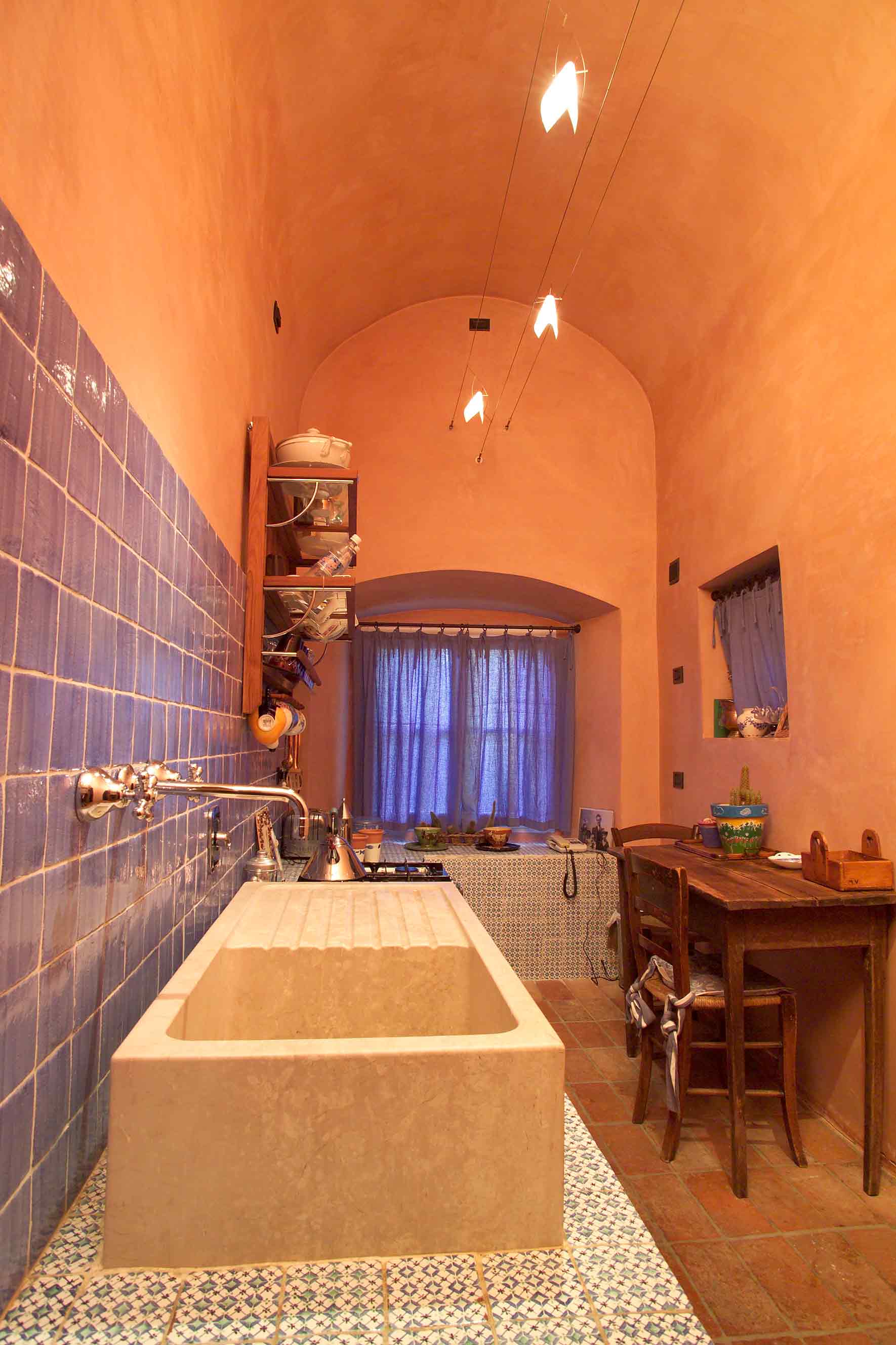 When I designed Silvia and Giuliano’s house, I made as much space I could from intertwined rooms, niches and holes in thick walls dating back to the sixteenth century. It was an almost hidden renovation of a building that had been converted for several different uses at a frenzied and colourful rhythm over the centuries: the chapel of a monastery, an unfinished church, a tavern of questionable morality, the warehouse of a plumber and inventor, an almost kitsch restoration for a refined restaurant.