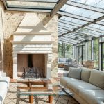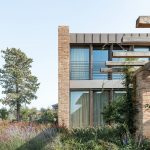 The new configuration shapes a discreet skyline of pitched roofs and terraces that converse with the horizon, while light—never showcased—sculpts surfaces designed to shift throughout the day and across the seasons. Three materials define the project’s essential grammar: local stone, reclaimed brick, and exposed concrete tinted in the mass. Together, they reinterpret the rural building tradition in a contemporary key without falling into imitation.
