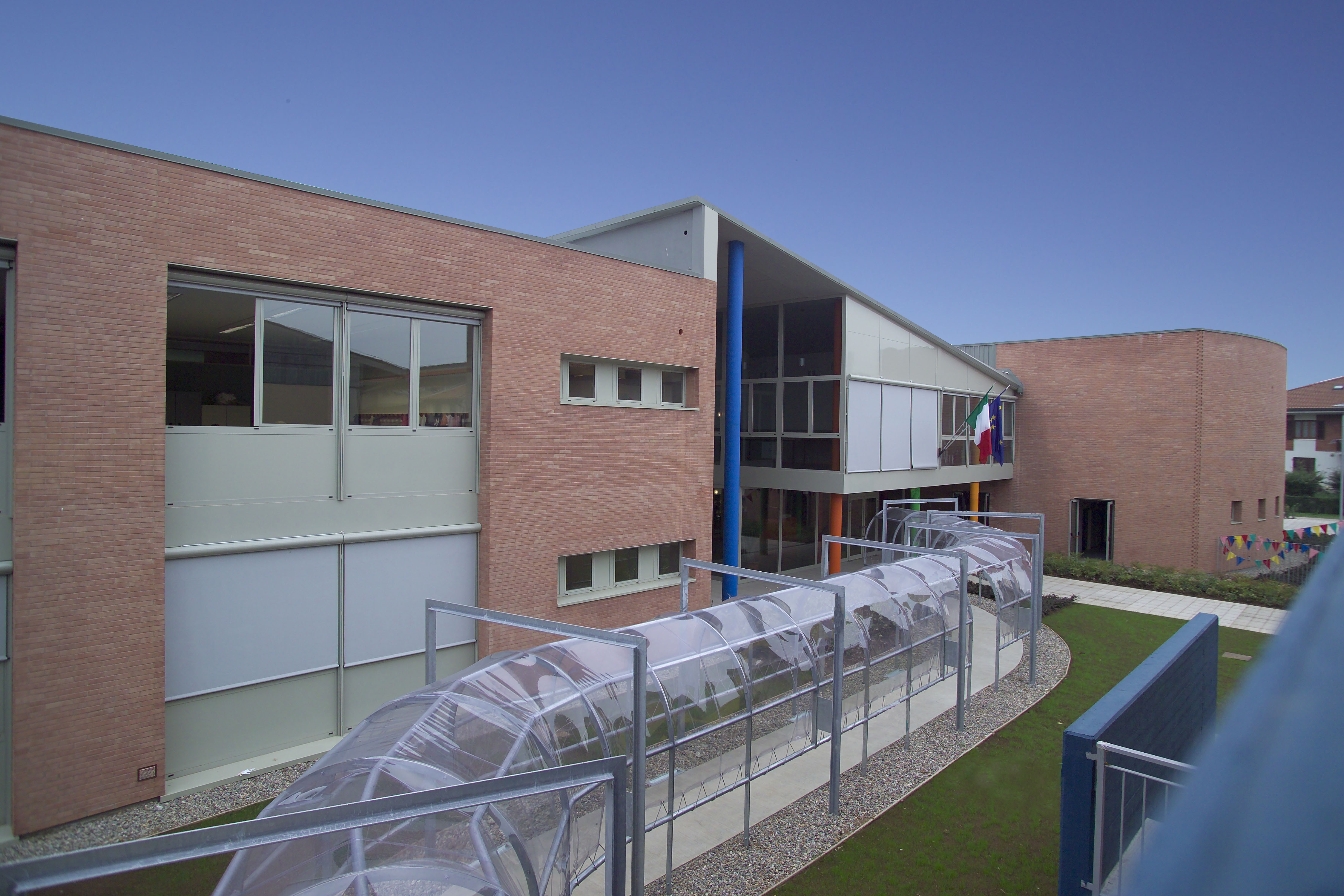 The project for the school campus in Lallio, in the province of Bergamo, is based on a sustainable approach involving concrete actions and choices that contributes to defining the forms and functions of the various spaces.