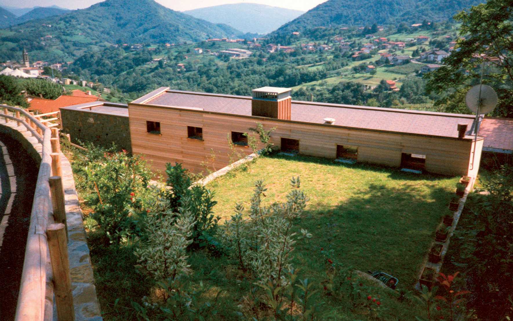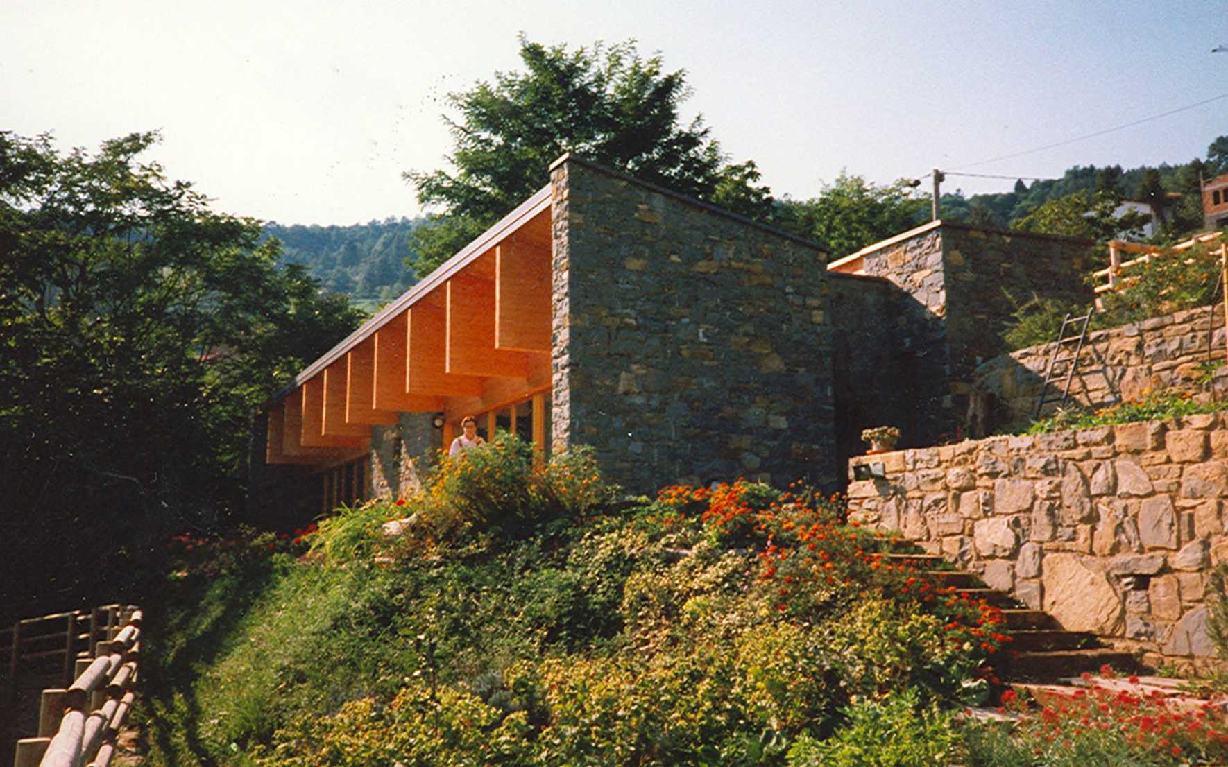 Here, at 420 metres above sea level, the house has chosen the location where to grow. This is the best site on the plot of land thanks to the healthy air and soil and to the beautiful view. However, it is also very difficult to access.