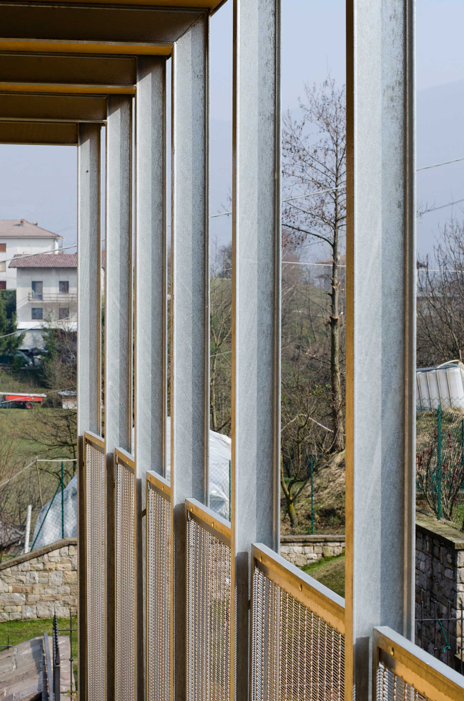 The project aims to redevelop and update the uncovered and covered terraces of the building by replacing the parapets and roof with new ones made of different materials. The project involves replacing the current wooden piers with iron beams, mounting horizontal wooden crossbeams with a metal mesh mounted on iron plate frames properly anchored to the beams, remaking the roof by laying a marine plywood board, and covering the roof with rheinzink plates.