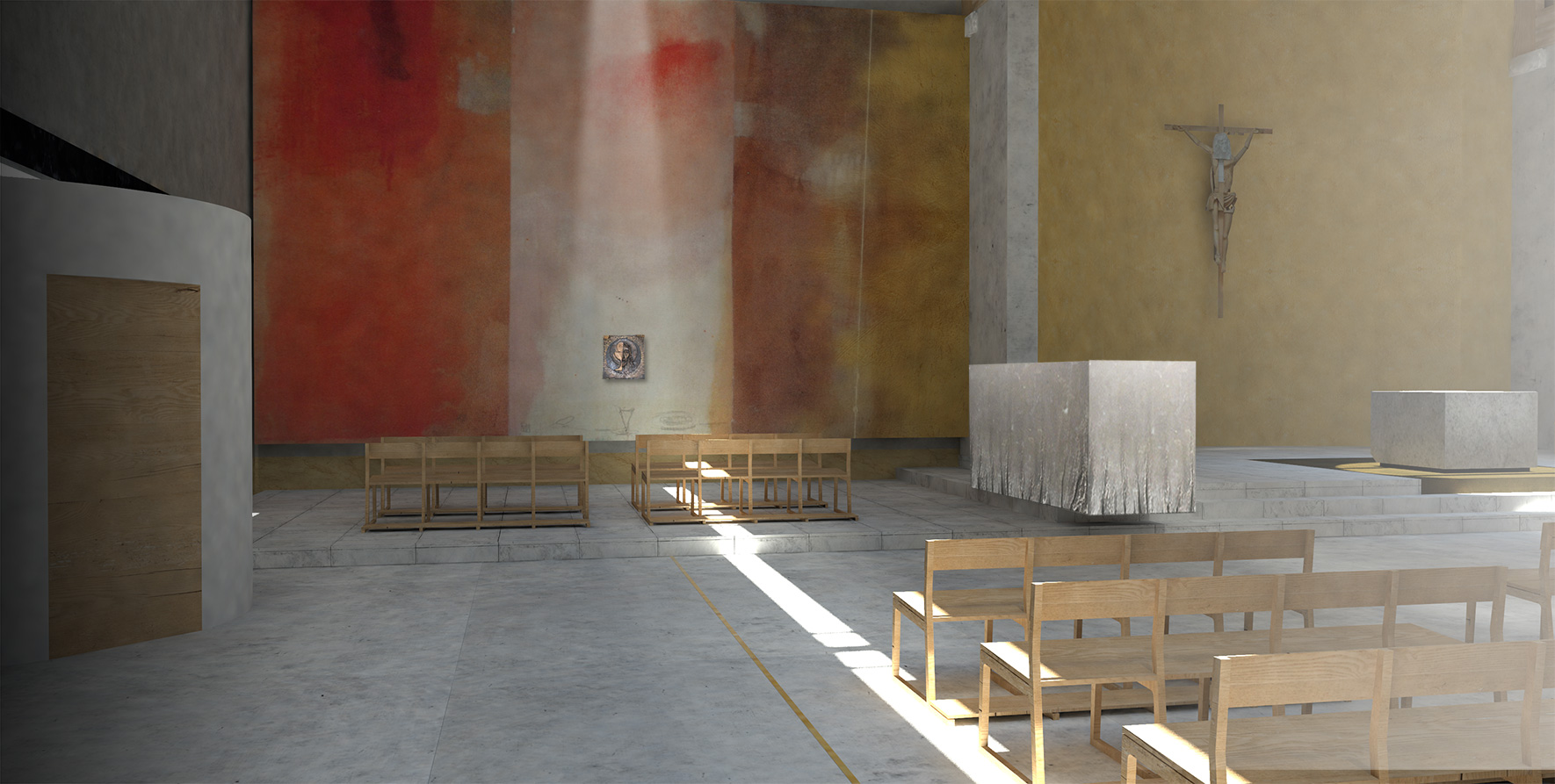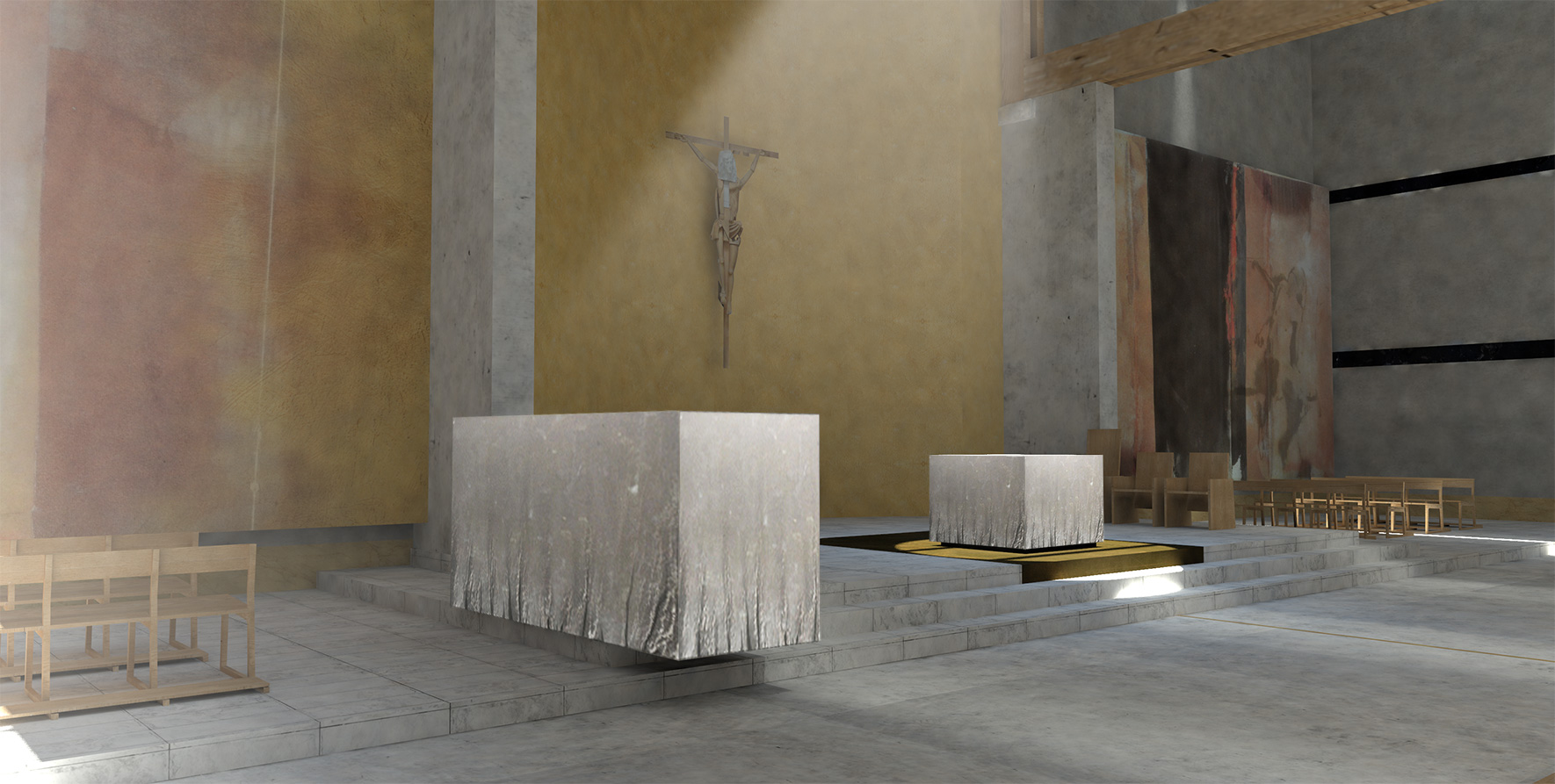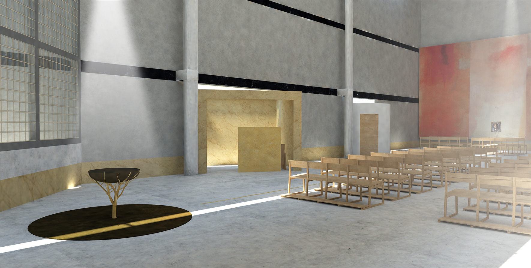 The project aims to simplify the building to give it back its spiritual power through an elementary form that conveys a particular sacred emotion through the silence of geometry and simple lines and surfaces.