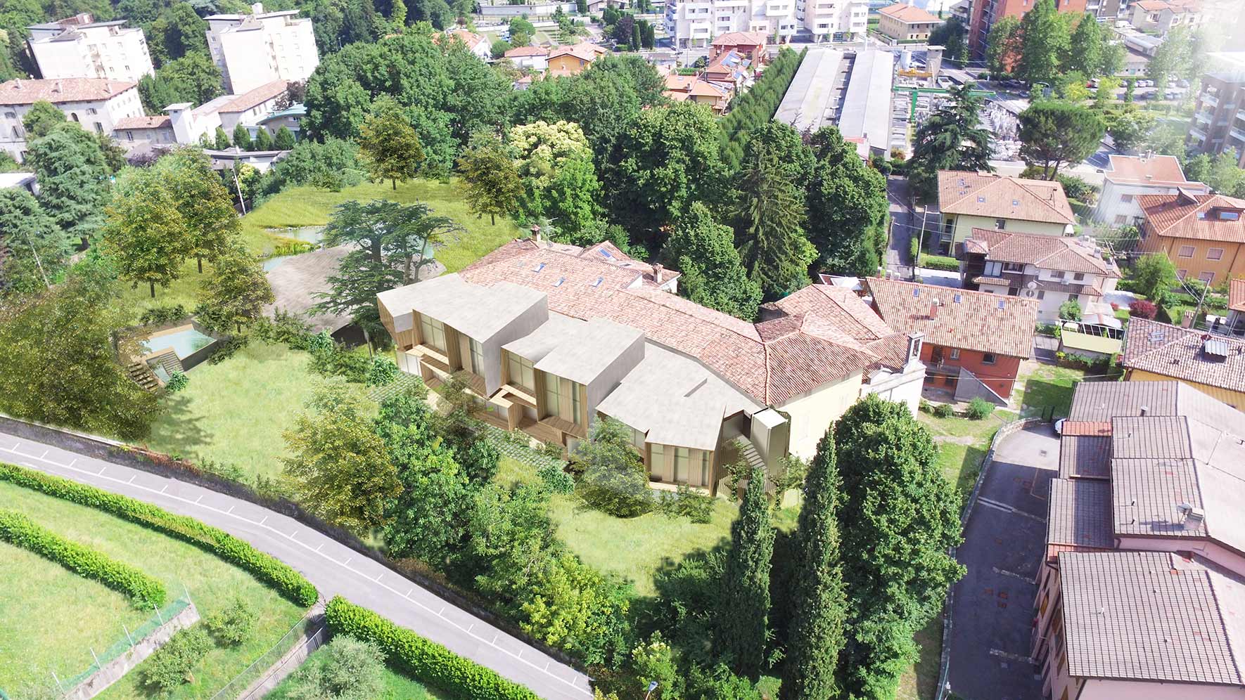 The large park that surrounds the villa will necessarily be modified, while keeping the most important trees that characterize the architectural scenery of the building complex and adding a bio-lake to convey emotional experience to visitors.