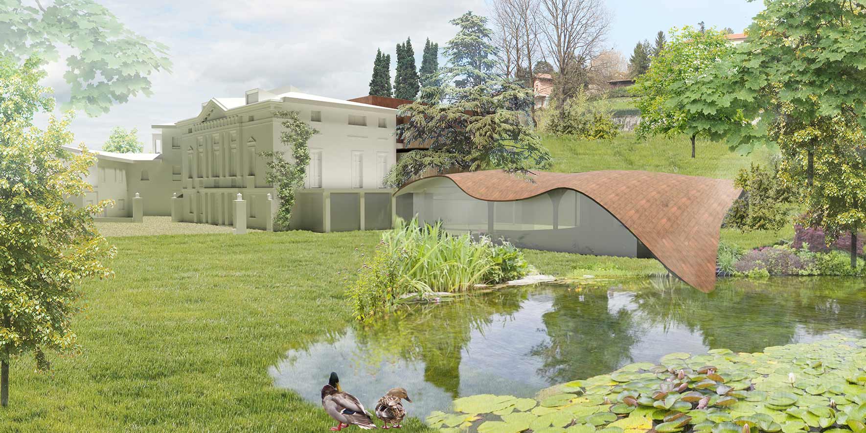 Il grande parco esistente che circonda la villa verrà necessariamente rivisitato, mantenendo tuttavia gli elementi arborei di pregio che caratterizzano la conformazione architettonica del complesso edilizio e arricchito da un bio-lago in grado di aggiungere esperienza emozionale.