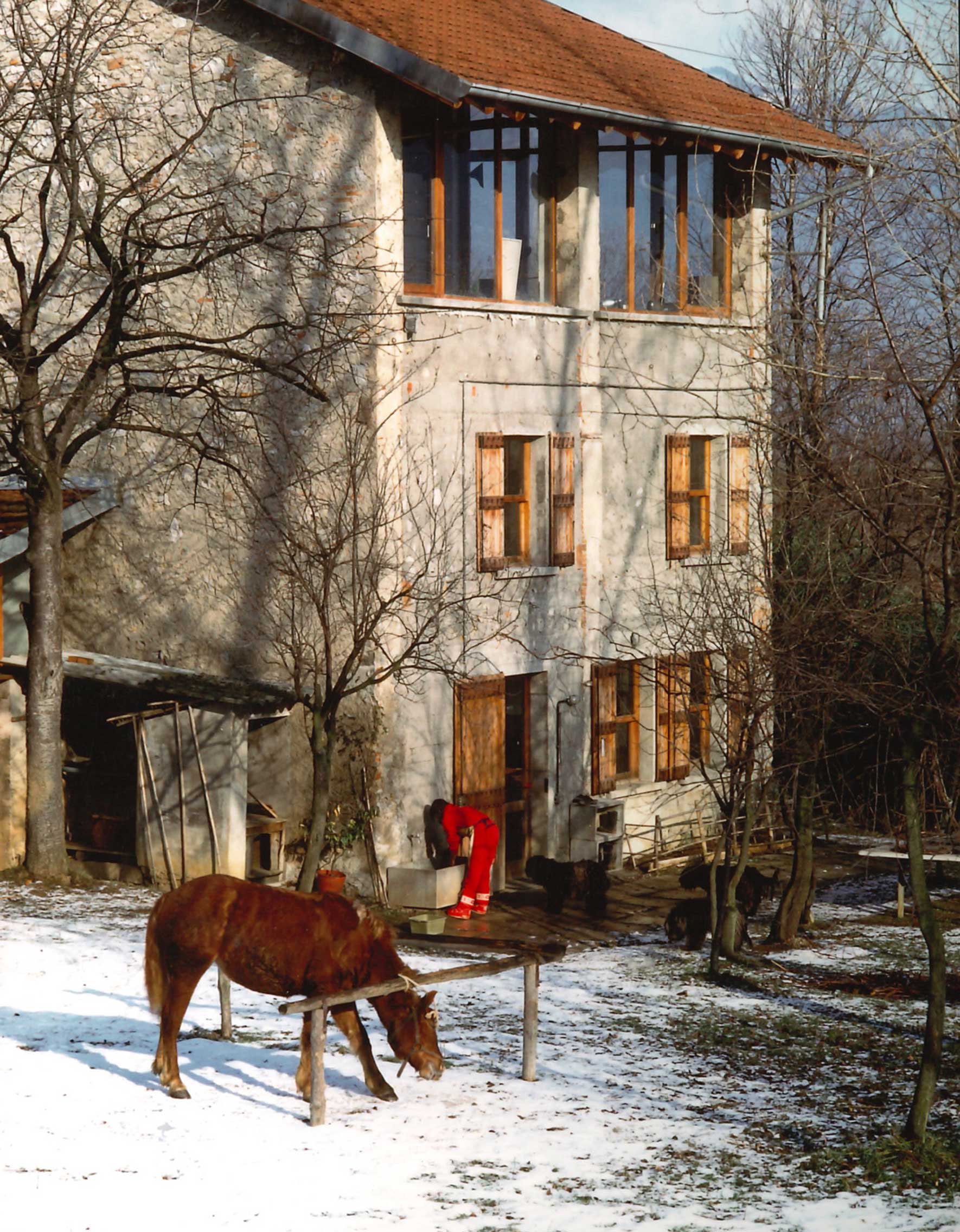 L’origine rurale della costruzione non è stata violata. Assecondare i luoghi in previsione di successivi cambiamenti, la filosofia di questo progetto si inscrive nelle linee di recupero ai fini abitativi di una casa rurale e fienile. Esposta a sud, la ristrutturazione rende abitabile collegandola e tamponando il secondo piano esposta a mezzogiorno. Le grandi finestre delimitano e concludono spazialmente la volumetria dell’edificio, che si completa aprendosi verso l’interno della proprietà.