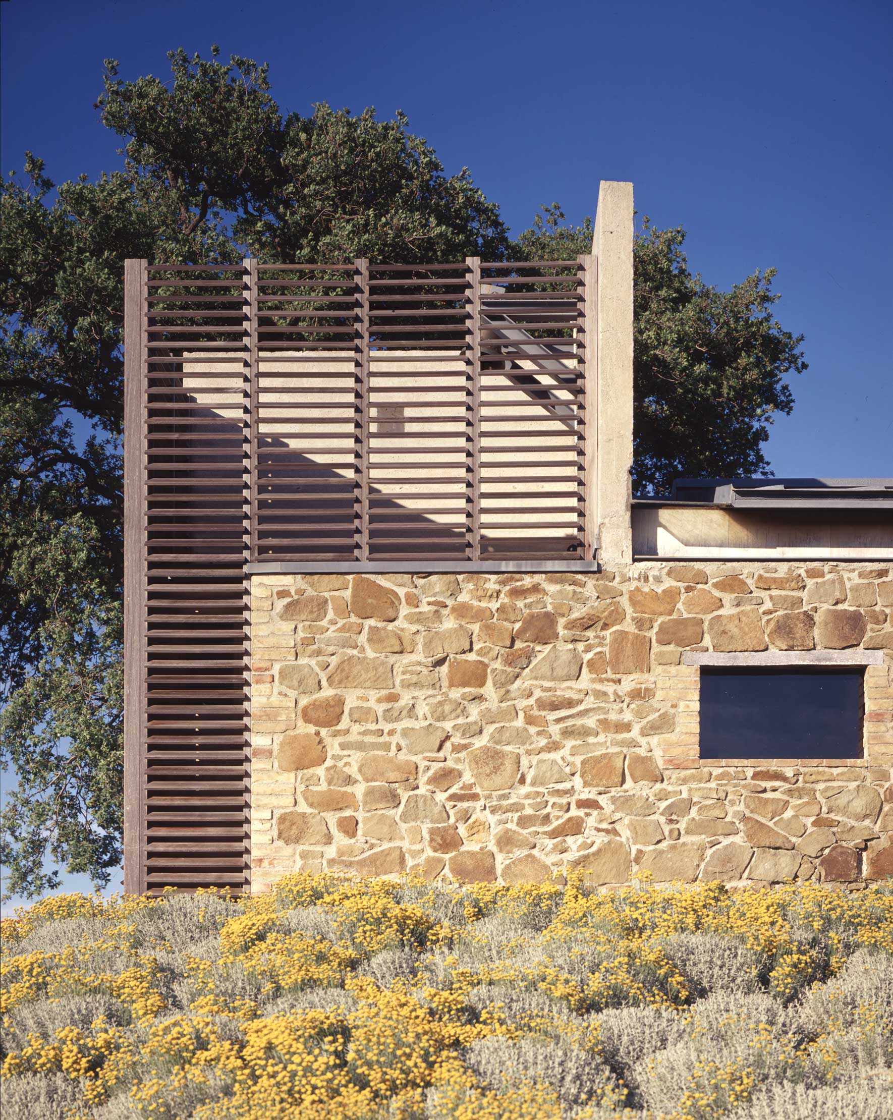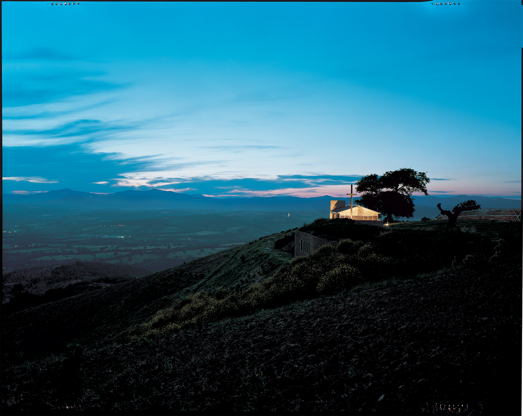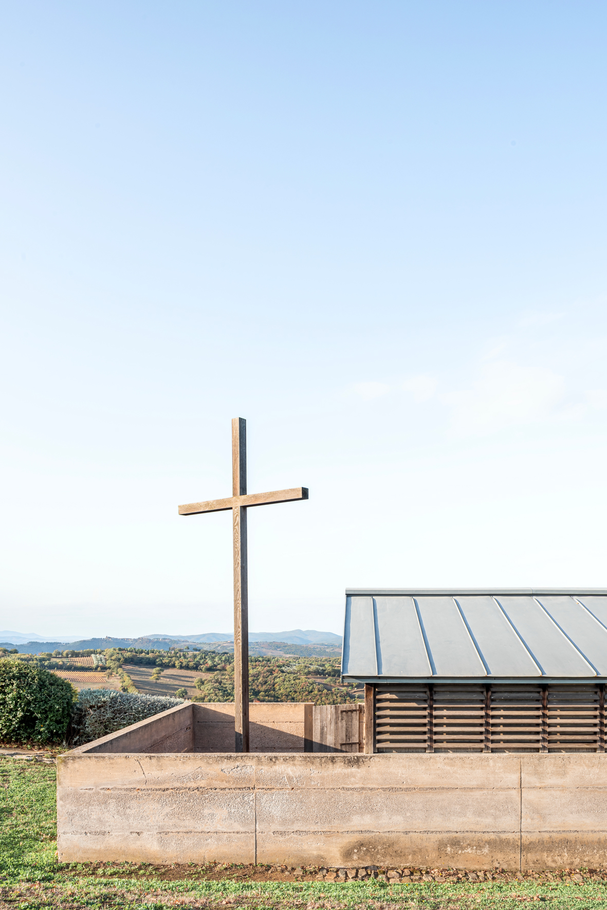 Una grande quercia, a fianco dell’ovile, individua il punto di maggiore concentrazione energetica; un orizzonte unico, dall’Argentario e l’Uccellina alla Val d’Orcia e al Monte Amiata. La religiosità in quel luogo era già altissima. L’equilibrio straordinario del sito non andava modificato; le aggiunte dovevano essere silenziose ma vive, perchè il luogo potesse rinnovare la propria energia".