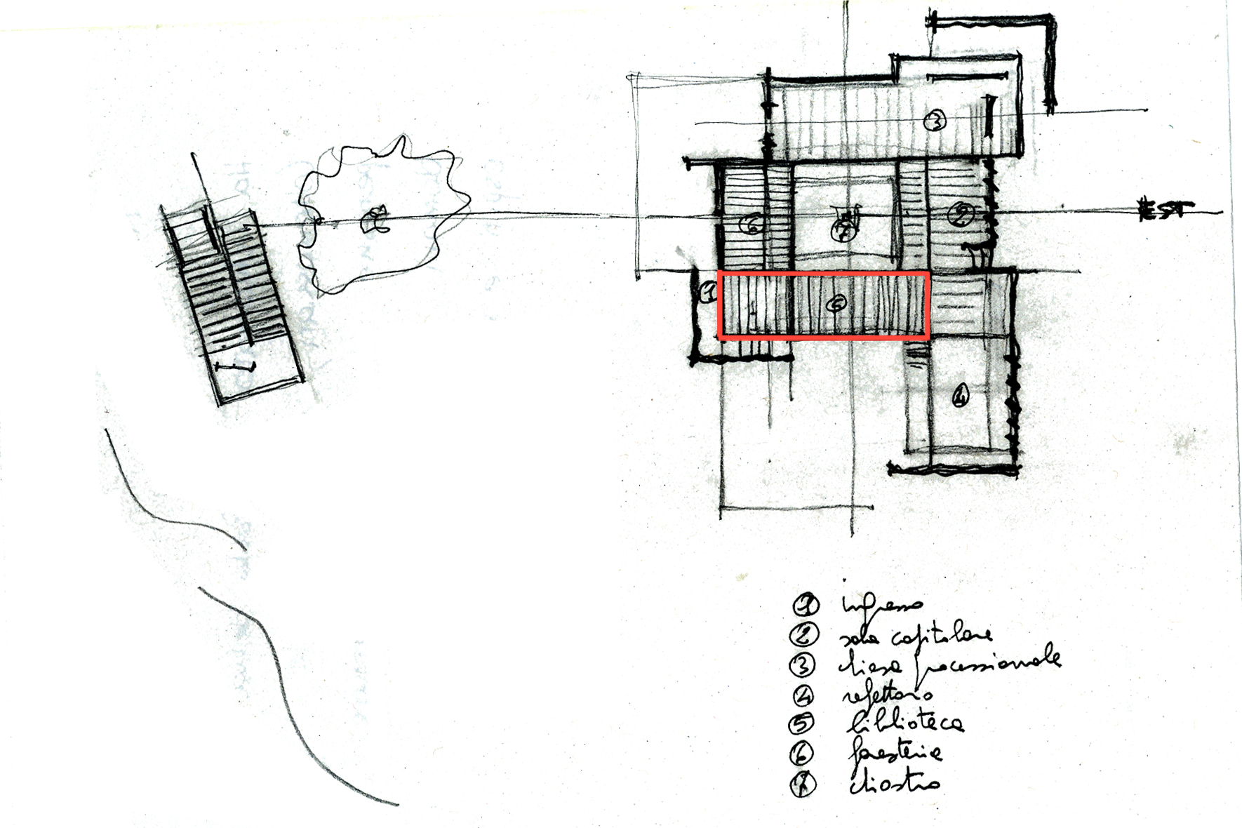 Il progetto per la Comunità monastica di Siloe si ispira alle suggestioni dell’architettura Cistercense che trae le proprie origini e fondamenta da conoscenze riferite al mondo della tradizione e trova nell’universo simbolico il linguaggio più idoneo a esprimere la propria esigenza di assoluto. Si articola sulla figura di un quadrato con i lati di circa 40 metri distinguendo al suo interno l’area per il culto, le attività ricettive associate ai servizi e la residenza dei monaci appartenenti alla Comunità. Al centro il Chiostro, quadrato di 14 metri di lato sul quale a sud si attesta il refettorio, sul lato est la sala capitolare e la sacrestia, mentre sul lato nord il volume della chiesa del monastero, in ultimo a ovest gli uffici e la foresteria del pellegrino. Completano il complesso la  chiesa del pellegrino e la cappella della luce.