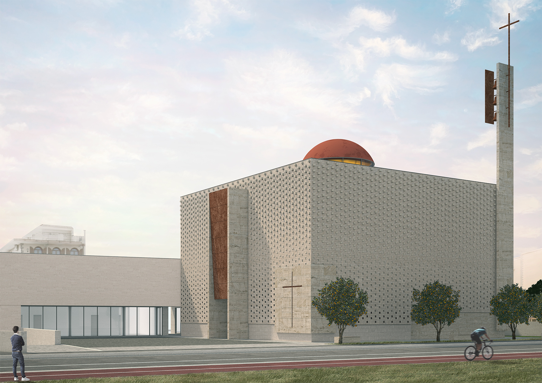 La nuova chiesa di Bagheria avrà caratteristiche climatiche ottenute mediante le antiche tecniche degli edifici mediterranei nord africani, rese possibili da un rapporto esatto tra l’aula liturgica (camera rinfrescata), la sezione e l’altezza del campanile (torre del vento). La depressione in aula provocata dall’effetto Venturi verrà utilizzata per la gestione bioclimatica, la ventilazione naturale e per il ricambio dell’aria primaria dell’intero impianto esattamente come avveniva nei monasteri medievali attraverso il campanile delle cattedrali romaniche cistercensi.