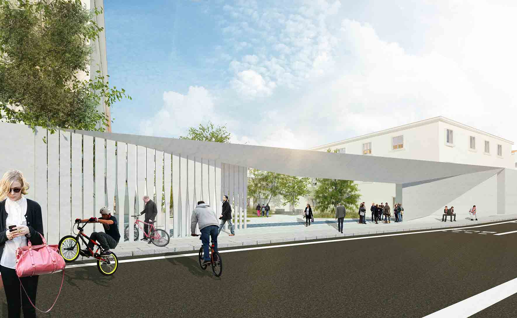 Ai piani terra negozi di vicinato, laboratori creativi, locali espositivi a gestione privata. L’ostello attiverà lo sviluppo di politiche inclusive, facendo in modo che l’offerta culturale riesca a essere sostenibile a livello economico-finanziario complessivo e accessibile al sistema universitario. Su via Sant’Anna si prevede l'ubicazione della residenza privata nel nuovo volume da edificare, con accesso carraio autonomo e parcheggi interrati privati. Sul lato opposto, il teatro e i laboratori creativi.