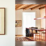Dopo l’ampliamento e spostamento dello studio in campagna, Via Longo 1 si è trasformato nella foresteria per i tirocinanti. Il tavolo basso su bocce in legno è il prototipo storico del “Tavolo su sfere” disegnato da Milesi nel 1978 e rieditato per la mostra “Inediti in legno” organizzata nel 2022 dalla Fondazione Architetti Bergamo.
