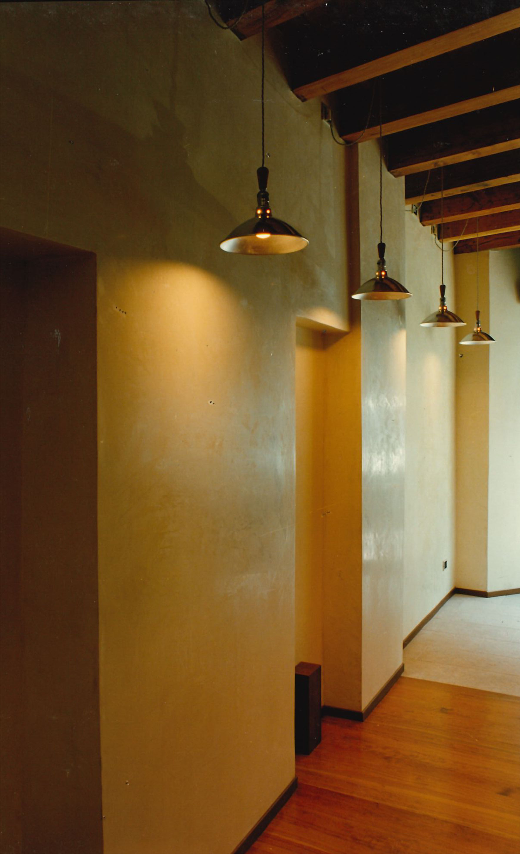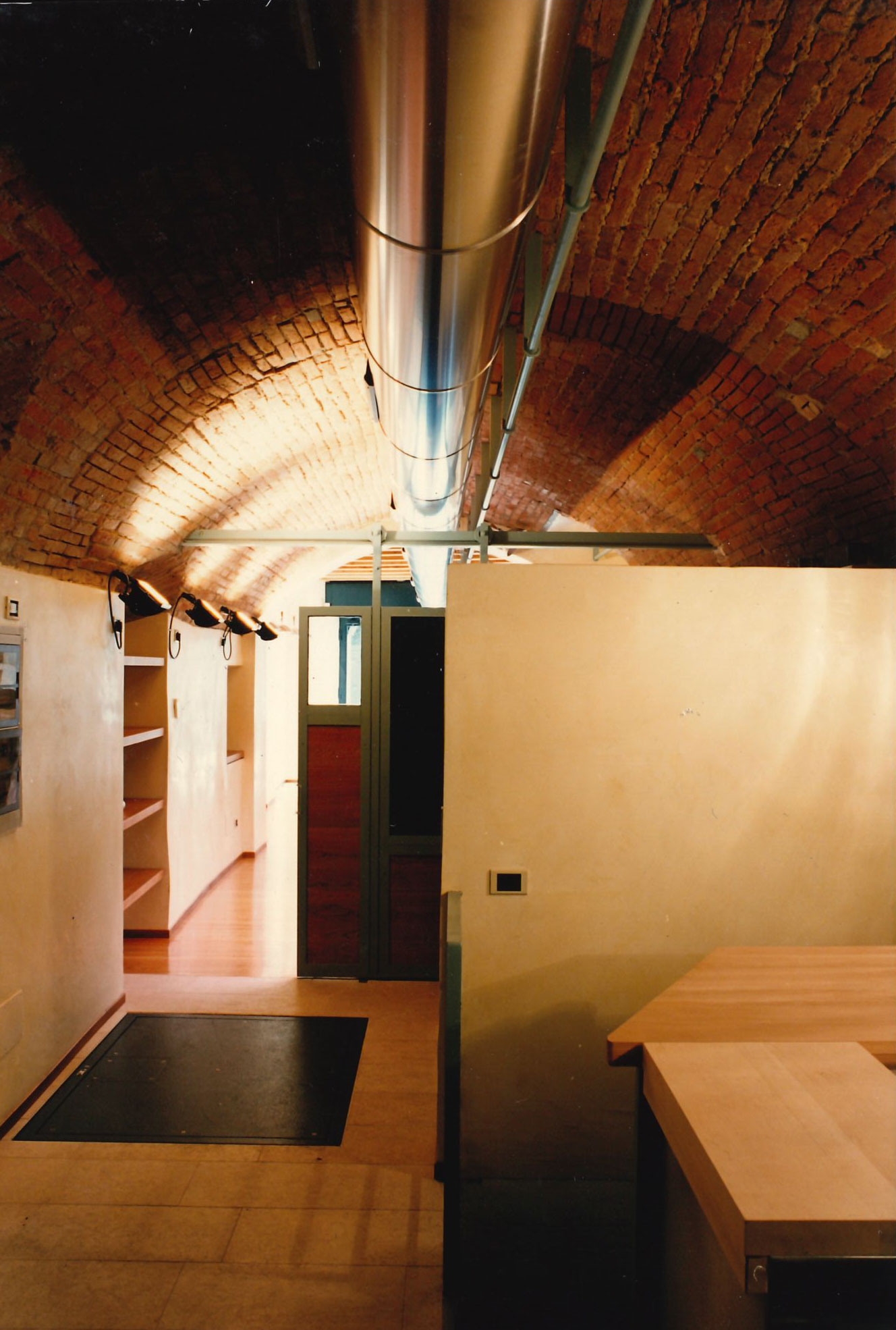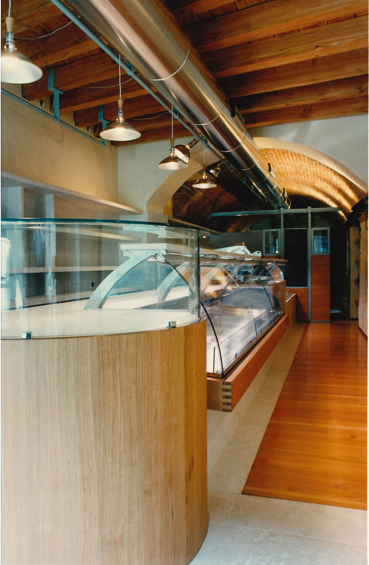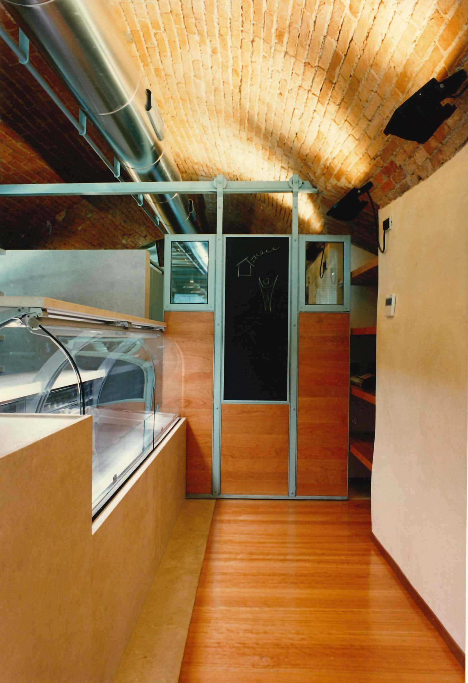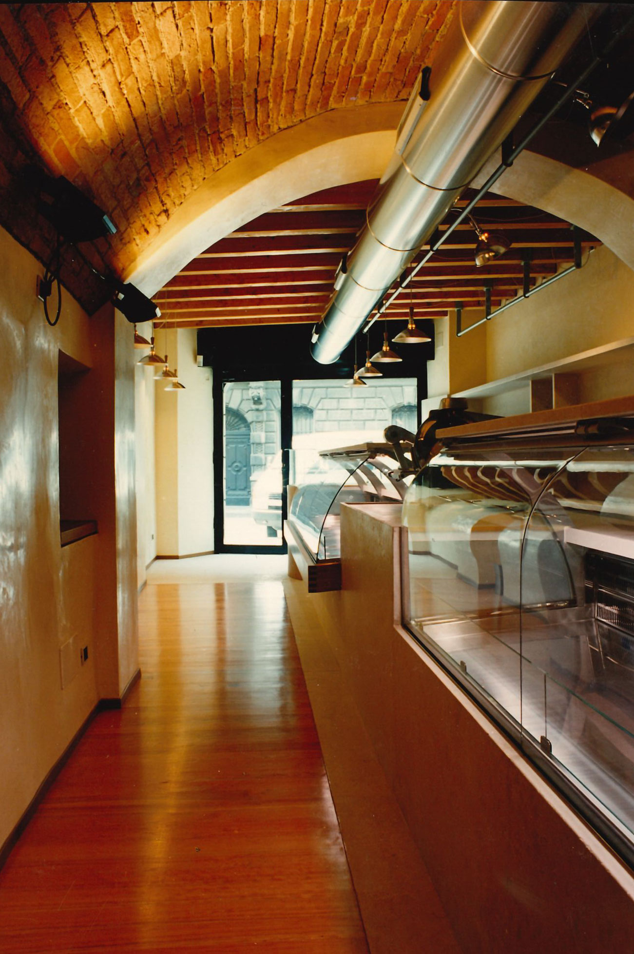 Una salumeria e una gastronomia in centro a Bergamo. Volevo che allo sguardo sembrassero “commestibili” anche forme e materiali architettonici. Nulla di sintetico: legno lasciato al naturale, intonaco di polvere di marmo schiacciato e cerato, pietra d’Istria consumata e patinata. Tutti gli arredi, gli impianti a vista e i banchi lavoro sono realizzati su disegno.
