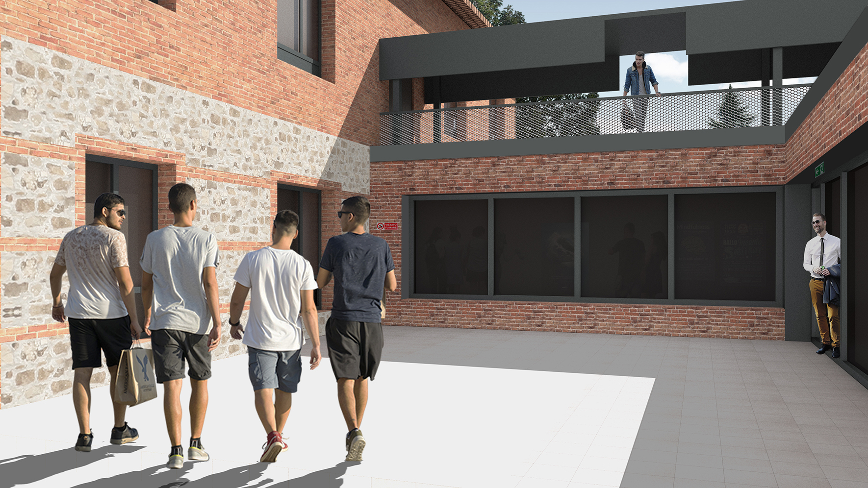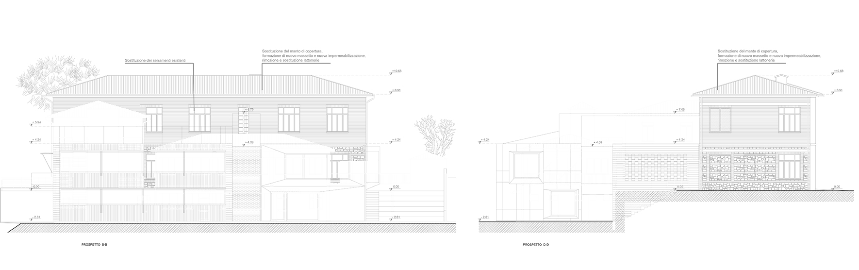 Le aperture sono studiate in modo da valutare i corretti rapporti illuminanti e termici di scambio con l’ambiente esterno, sfruttando il più possibile l’illuminazione naturale. L’edificio rispondera così nel suo insieme ad alti livelli di risparmio energetico ad emissioni zero nonché di adeguamento sismico.