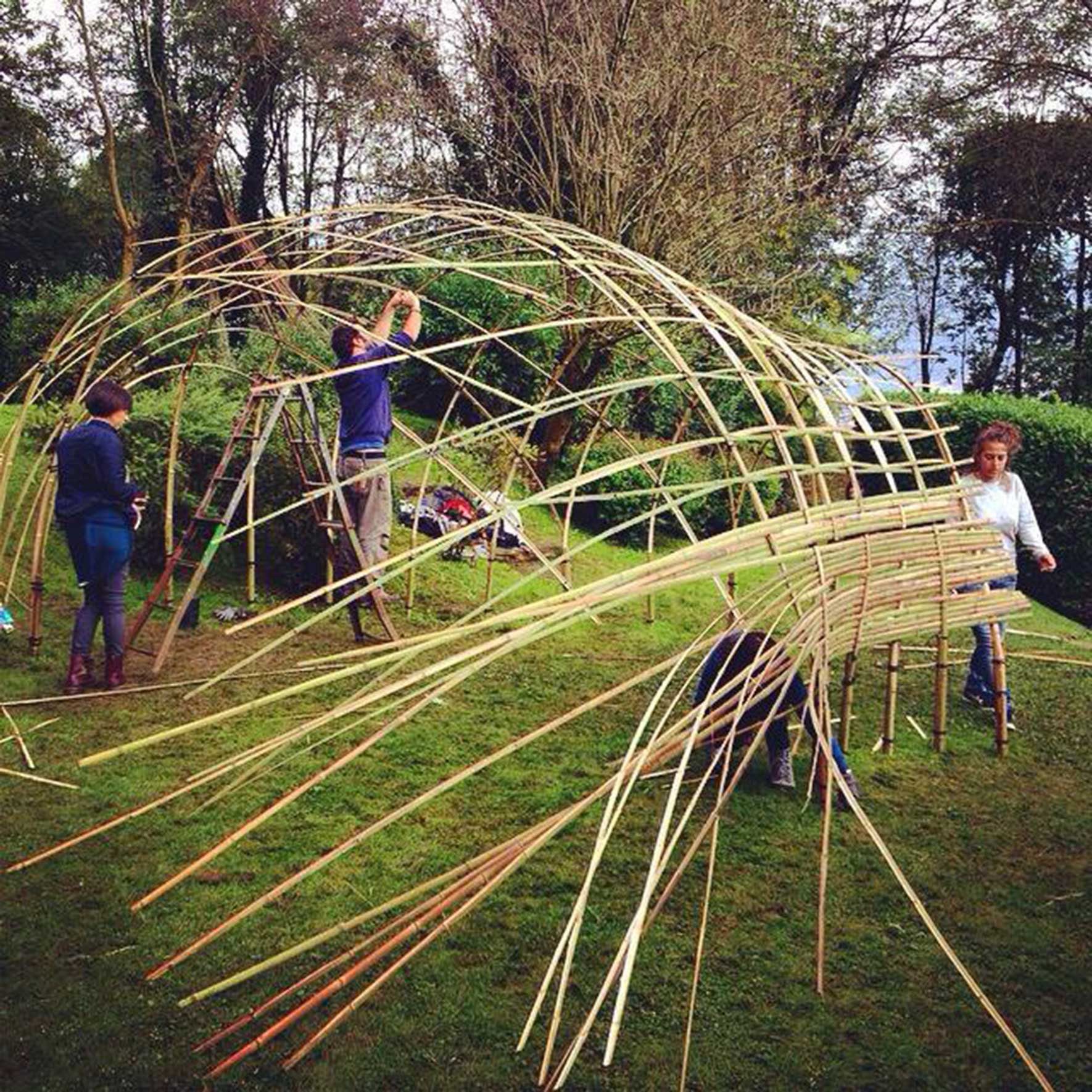 Il padiglione in bamboo presso il parco dello studio Archos è stato realizzato in occasione del laboratorio di progettazione integrata sul tema delle costruzioni temporanee, coordinato dall’architetto Francesco Poli del gruppo LAN_laboratorio architetture naturali. Il taglio delle canne nel bosco di Bambusa Dorata e l’immediata costruzione si è dimostrata un occasione irripetibile per apprendere le tecniche base della costruzione con materiali vegetali e viverne l’esperienza pratica attraverso un percorso di didattica e progettazione partecipata, innovativo e creativo.