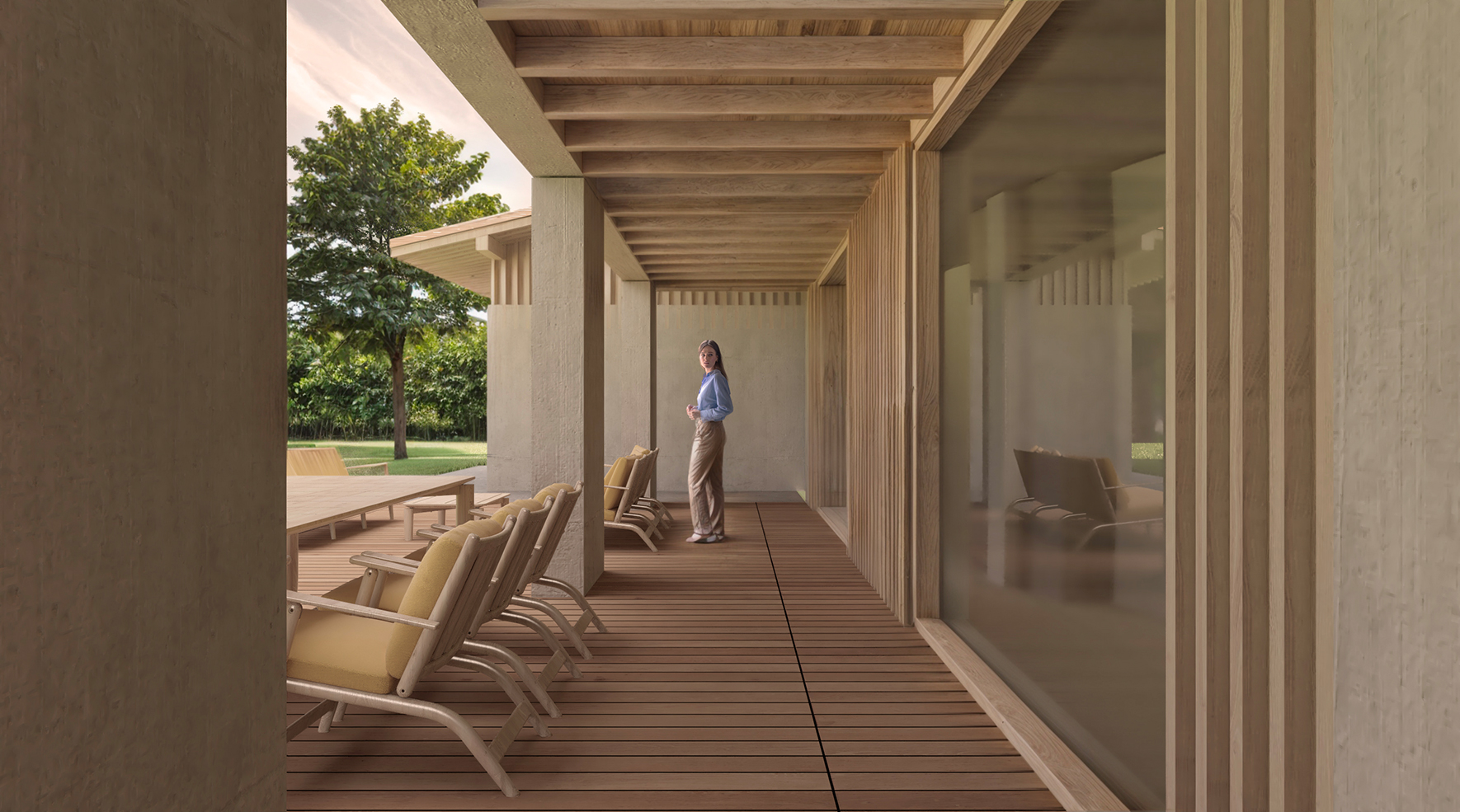 L’ombra diventa un dispositivo compositivo, il verde una trama continua che attraversa l’impianto. Il progetto non cerca l’iconicità, ma una bellezza silenziosa e necessaria: quella che nasce dalla coerenza tra forma, clima e tempo. Un abitare che si piega alla logica del luogo, per restituire senso al limite e identità al margine.