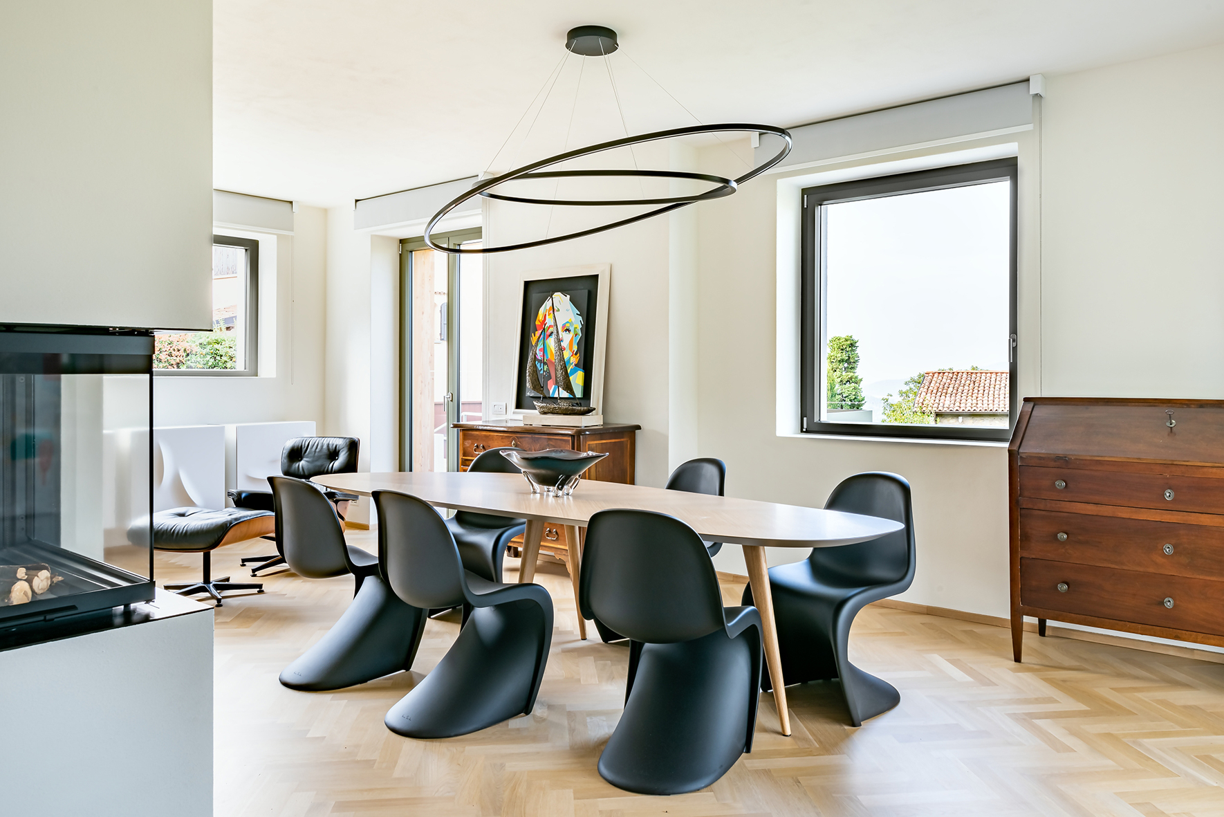Progetto di ristrutturazione di una villa unifamiliare dei primi anni ’80, costituita da un corpo di fabbrica su tre livelli poggiato su un pendio, mediante attuali ideali dell’abitare e un’architettura certamente contemporanea in relazione soprattutto con l’area verde sulla quale si affaccia e nella quale si trova immersa.