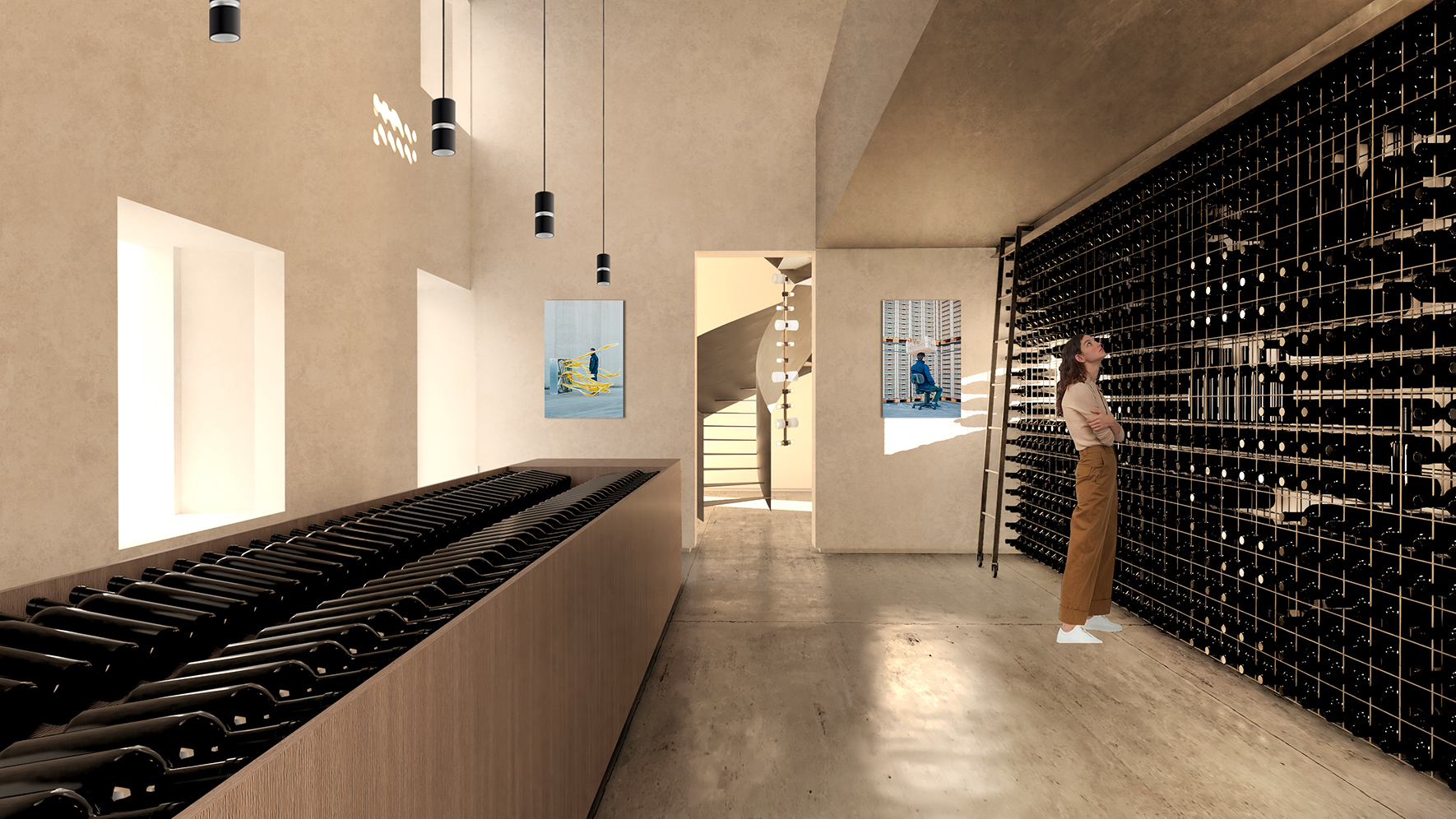 L’intervento è concepito con un approccio conservativo e innovativo, rispettando il carattere storico dell’edificio e integrando soluzioni architettoniche che ne esaltano la fruibilità e l’estetica. Elemento distintivo del progetto è la scala elicoidale in ferro, che diventa il fulcro visivo e funzionale collegando il piano terra con le aree espositive superiori, ricavate da passerelle in ferro che si sviluppano tra le antiche mura, creando un effetto di sospensione e leggerezza.