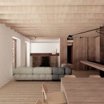 I muri esterni in pietra, conservati e restaurati, raccontano la storia del luogo, mentre gli interni accoglienti si aprono verso una nuova prospettiva di vita. Travi a vista in legno, essenziali e calde, dialogano con gli ampi spazi illuminati da grandi aperture vetrate, che incorniciano il panorama montano e favoriscono un dialogo costante tra interno ed esterno.