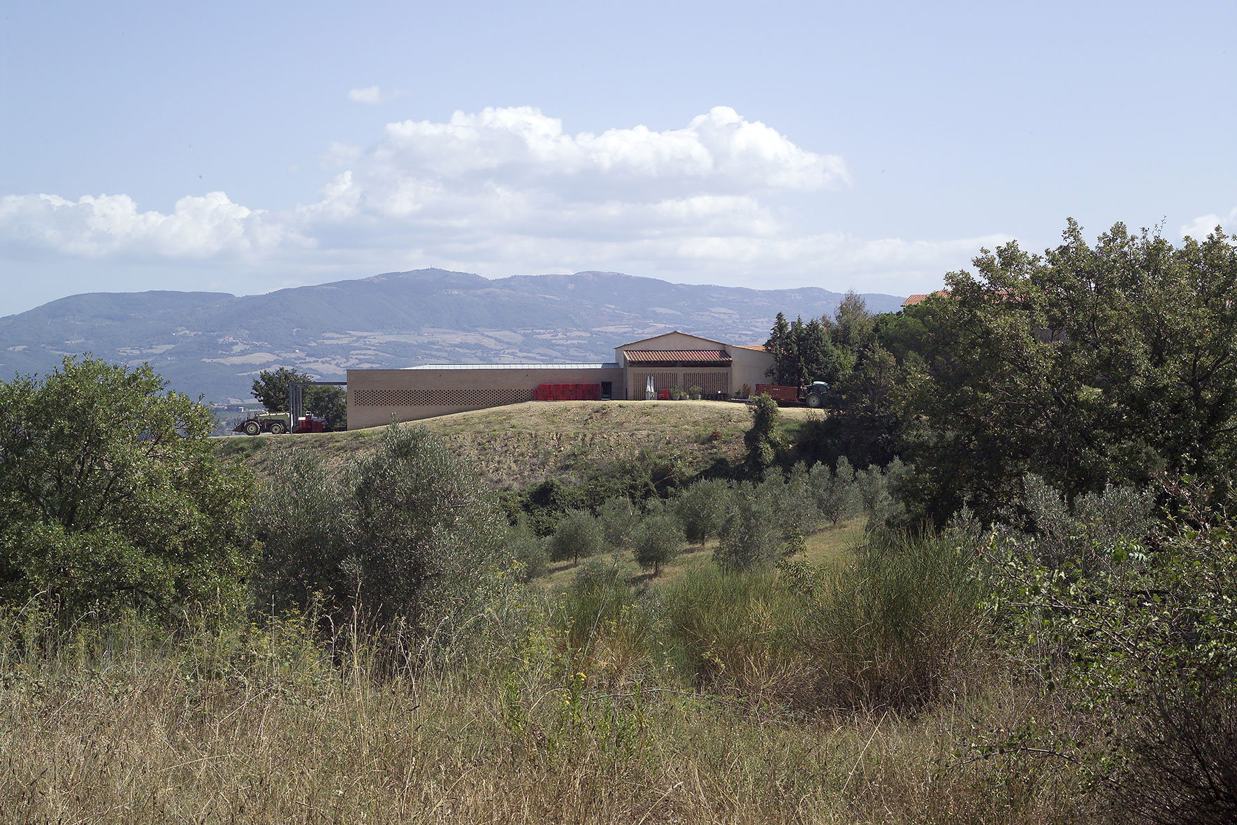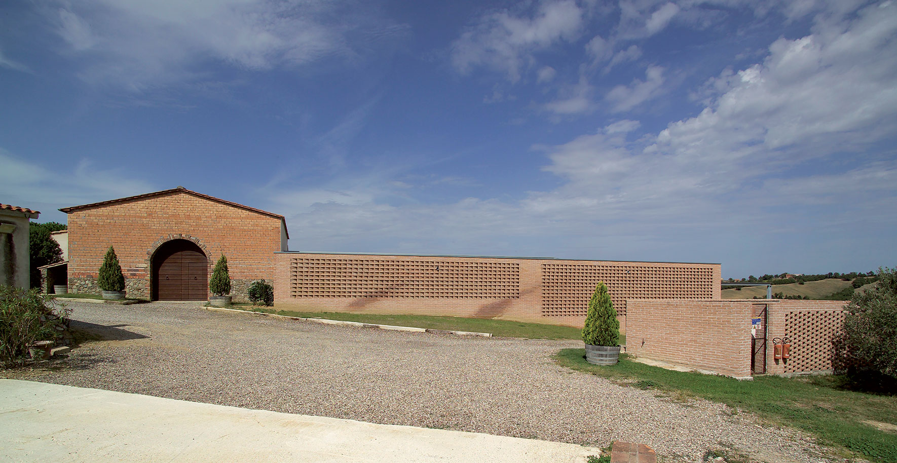 A 500 mt sul livello del mare nell’entro terra grossetano realizzato sulla demolizione di un capannone prefabbricato degli anni ’50. Il collegamento alla tinaia avviene per gravità, la climatizzazione e il controllo dell’umidità sono naturali.