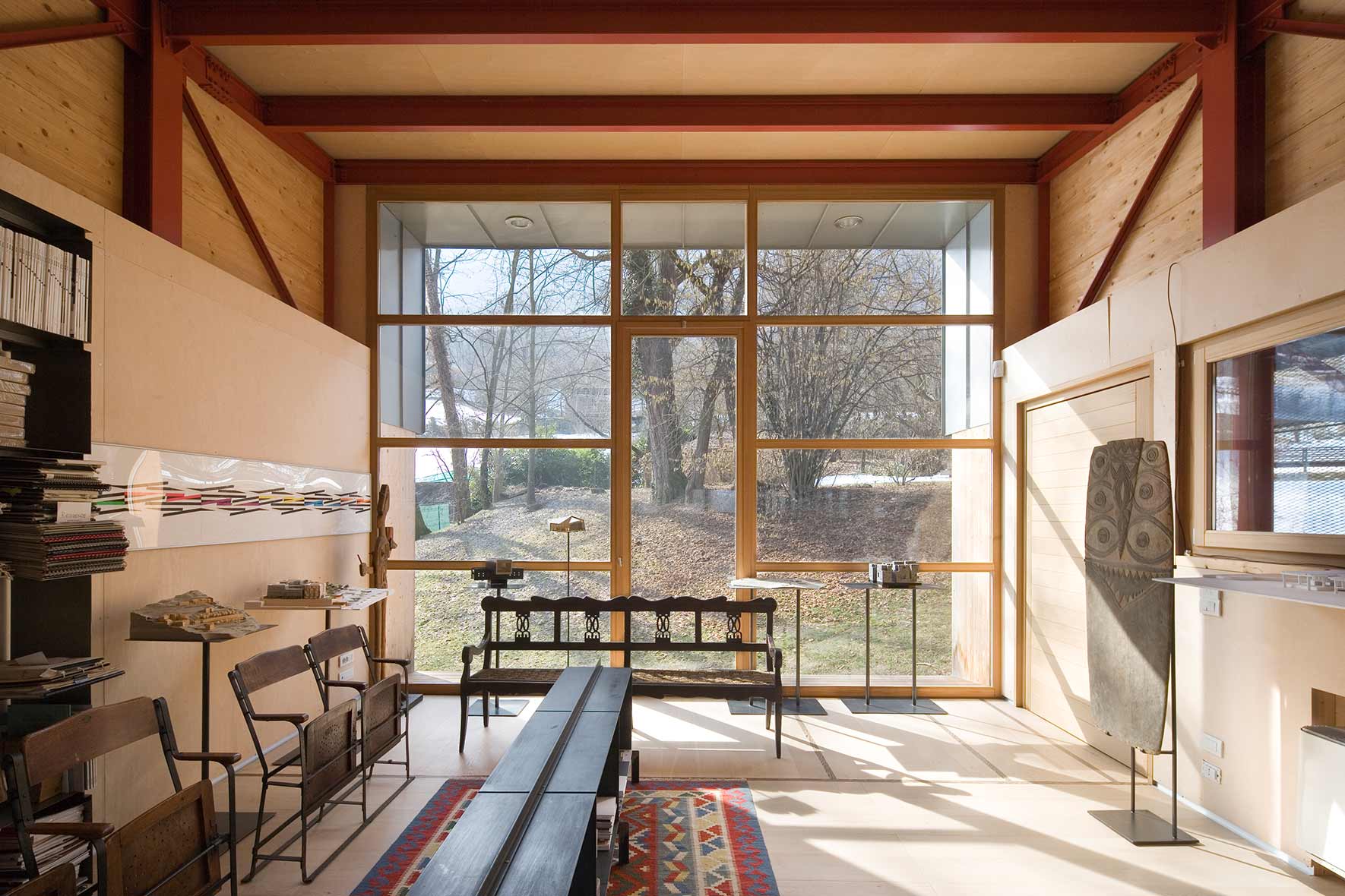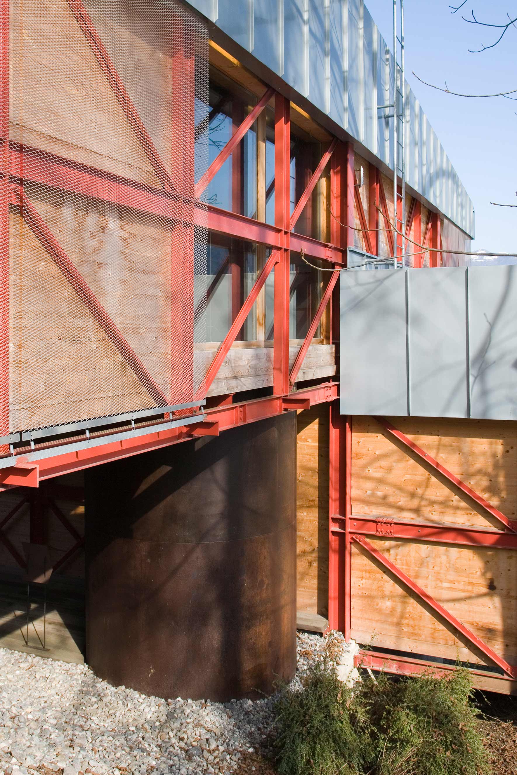 Questo edificio è il risultato dell'evoluzione di un modo di progettare e costruire coerentemente con i bisogni delle persone e dell'anima della natura. Il rivestimento è in zinco-titanio senza cuciture o saldature, in quanto si dilata in modi diversi al sole e al freddo. La scala serve per salire e guardare la vista dall'alto.